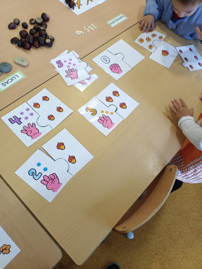 Per a fer-ho hem aprofitat elements naturals de la tardor i altres materials manipulatius dels colors característics d’aquesta estació.