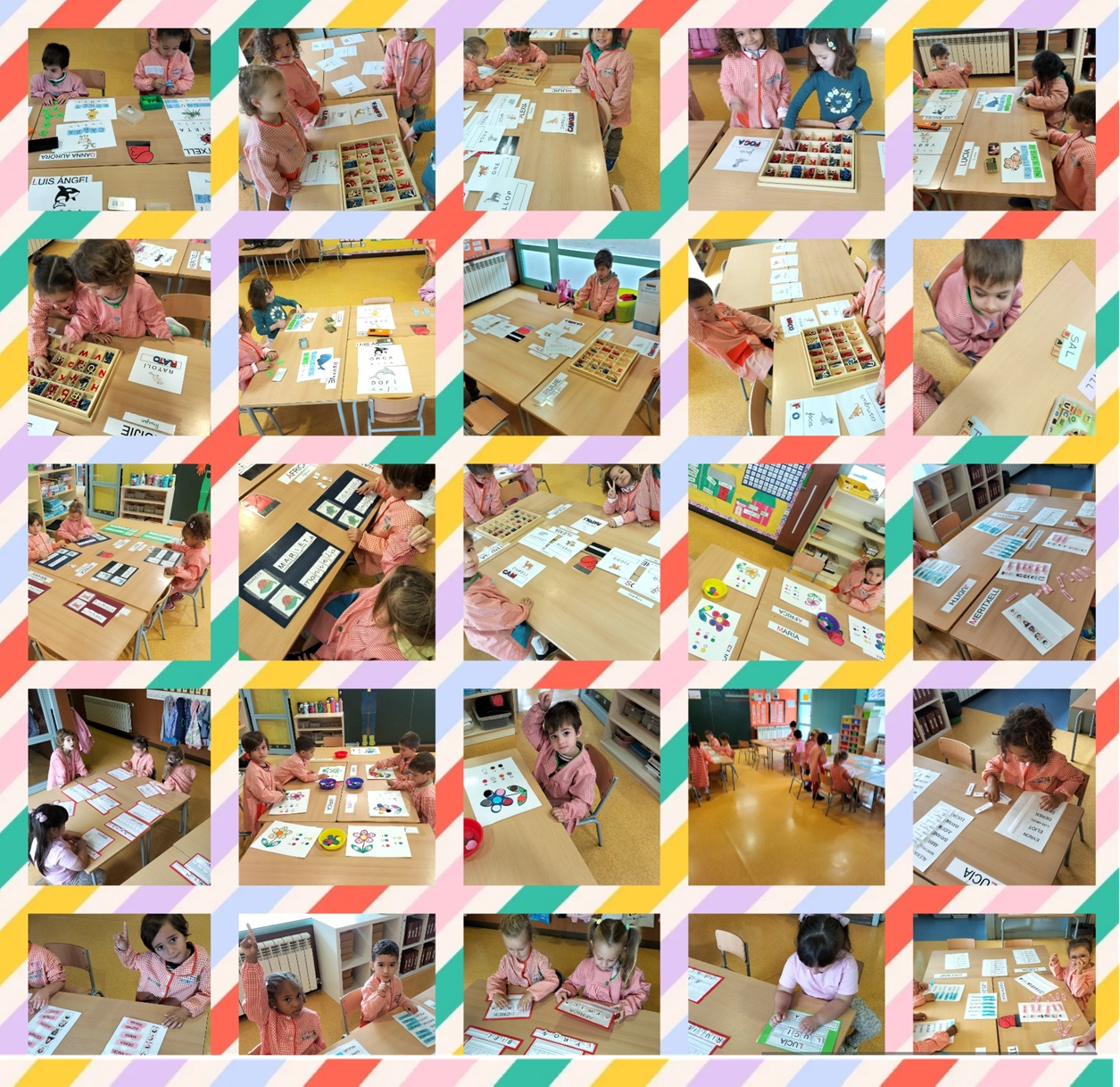 Els Patufets estan treballant les vocals (discriminació visual i auditiva), comencen a observar i comparar la lletra de pal i la lligada del seu nom i altres lletres, realitzen activitats de grafisme i motricitat fina per progressar en les seves habilitats motrius i que els faciliti més endavant el pas a l’escriptura.