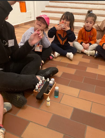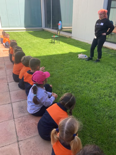 També ens varen explicar com l’artista feia servir els diferents pinzells i vam fer veure que érem artistes i pintàvem amb els pinzells.