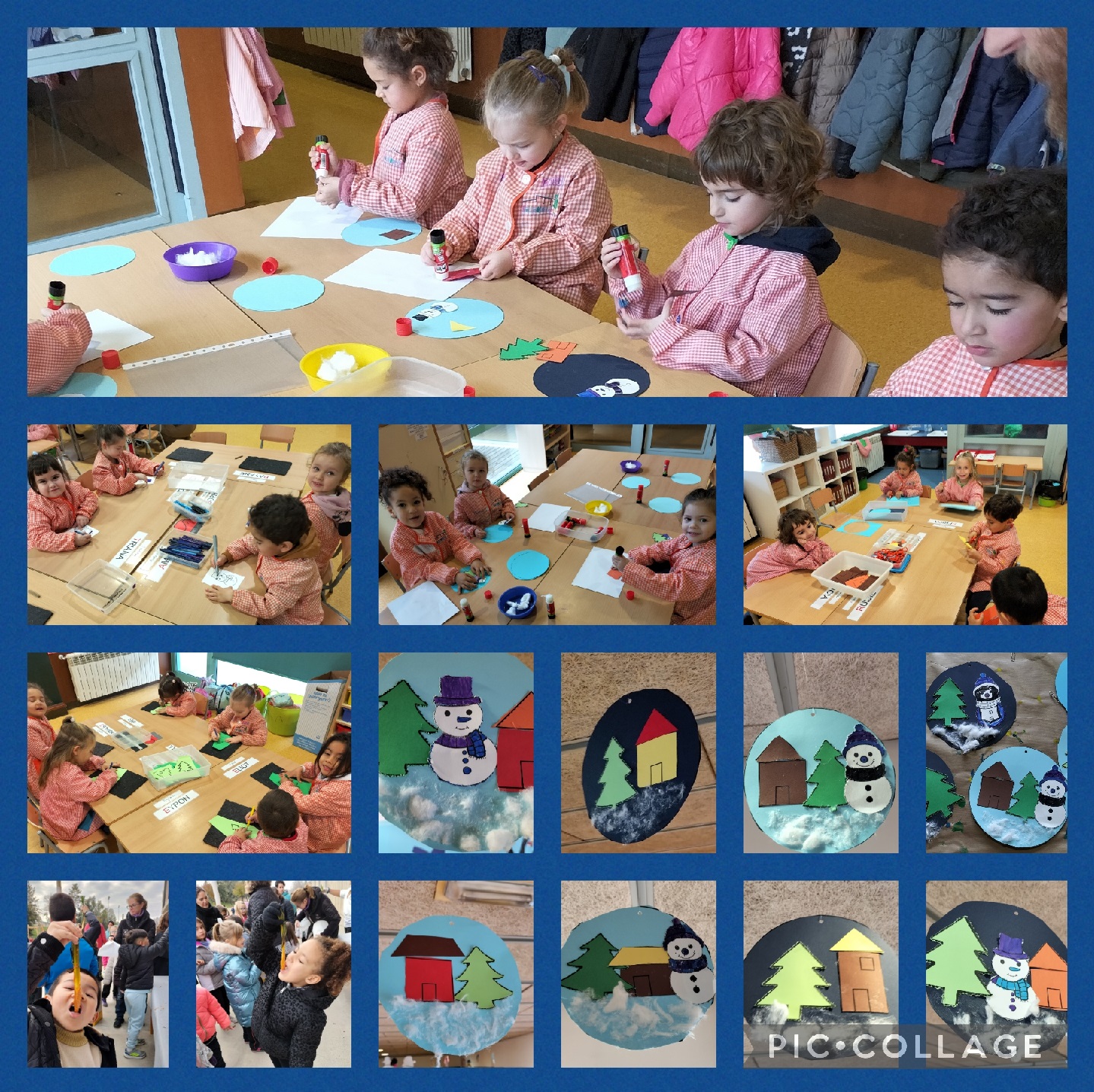 Aquest dimarts els Patufets han fet activitats d’hivern per decorar la nostra escola. Hem fet paisatges d’hivern, composicions amb arbres, ninots de neu, cases i neu. Després de punxar o retallar els elements per fer les composicions, cada infant almenys ha fet un paisatge. Ens han vingut a ajudar el pare d’en Derek i els pares de la Danna, moltes gràcies als tres, vam passar un bon matí.
