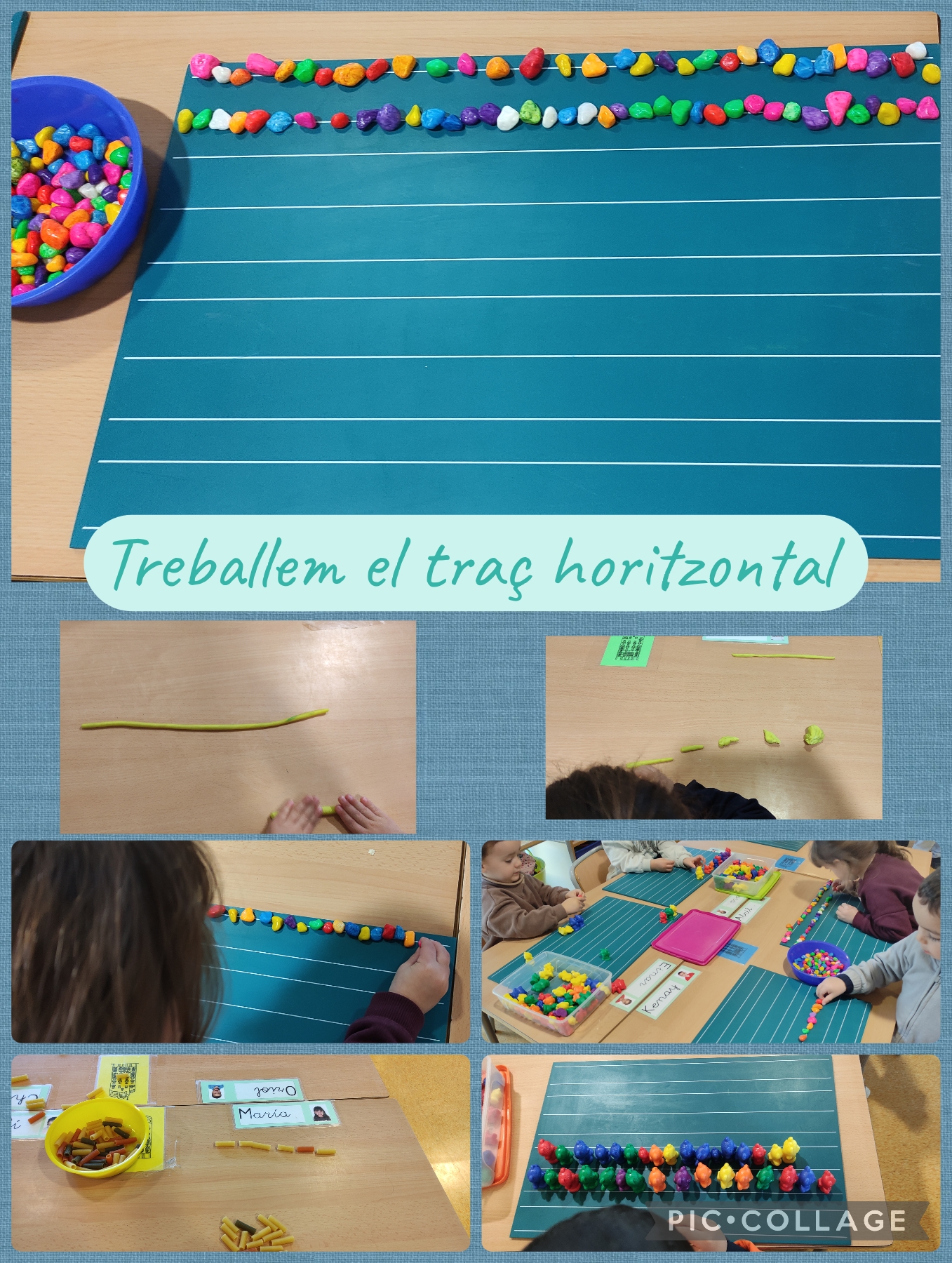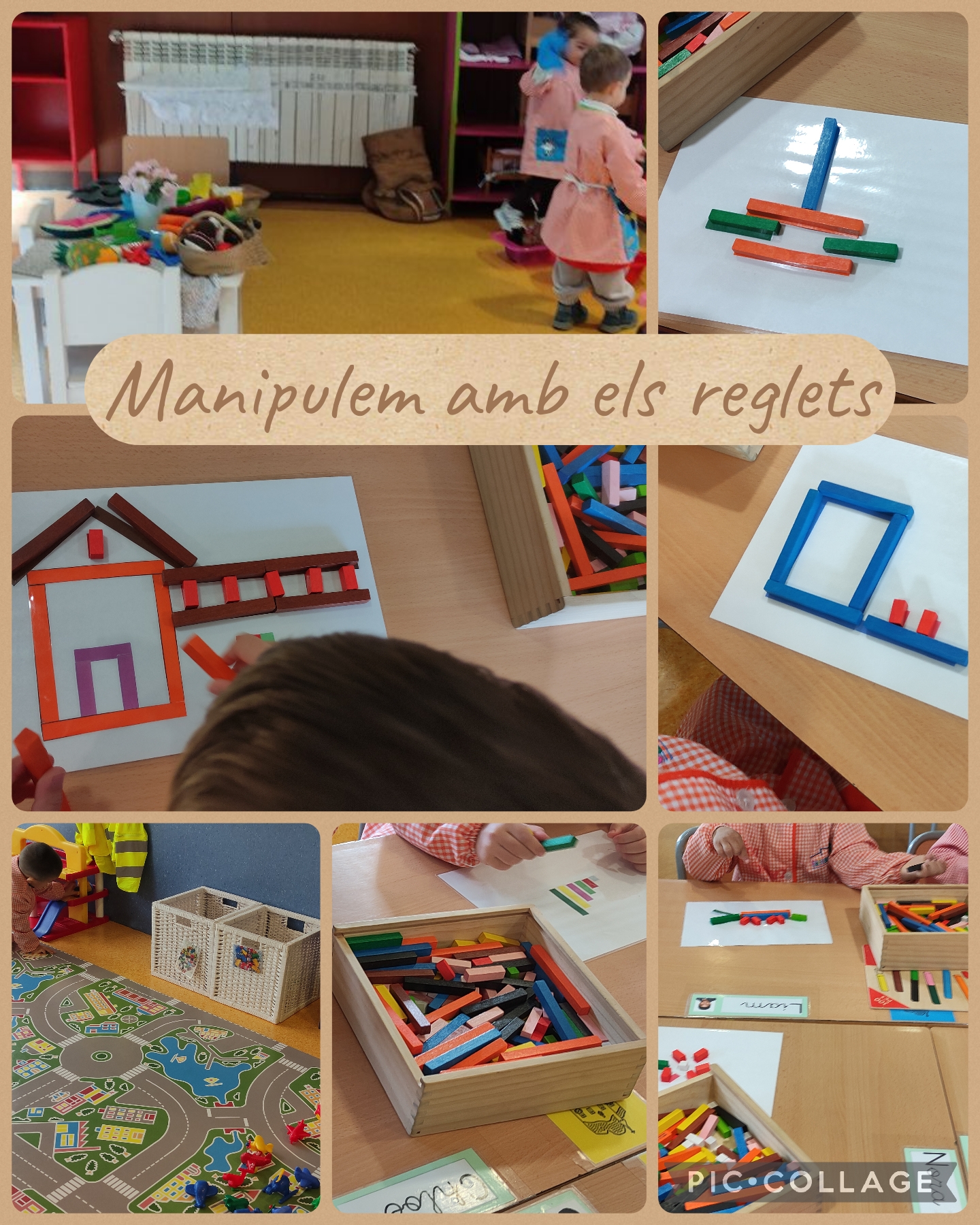 A I3, estem treballant diferents conceptes amb material manipulatiu. Hem treballat el traç horitzontal, hem jugat amb els reglets a formar figures i moltes més activitats que anem fent a la classe. Estem aprenent moltes coses.