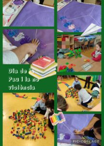Els nens i nenes d’I3 hem començat el nou trimestre, treballant de valent. Hem fet els tallers d’hivern per decorar el passadís del parvulari, nosaltres hem fet una bufanda. A la classe hem començat amb el racó de l’hivern i el dels animals de granja. També estem treballant el cercle i el nombre 1 i continuem amb el treball del llenguatge oral i hem fet un treball de tot el parvulari pel dia de la Pau i la no violència.També tenim temps de divertir-nos jugant i fent creacions amb les construccions.