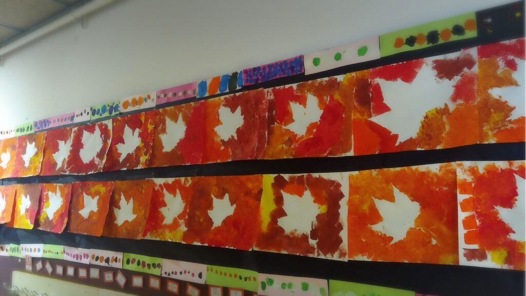 A plàstica hem pintat aquestes fulles amb els colors de la tardor. Ens han quedat molt boniques.I també hem fet uns cargols per decorar el passadís d’Educació Infantil.