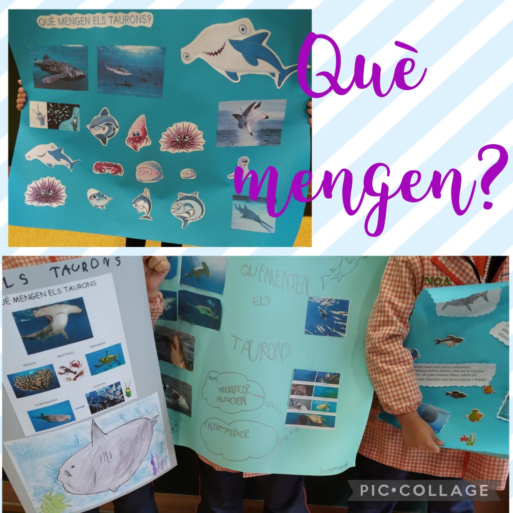 També hem après dues cançons en català sobre els taurons i una en anglès. Fins i tot, ens sabem una endevinalla.