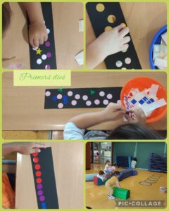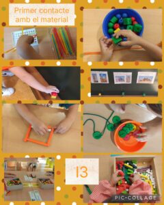 Som els nens nenes d’I3 de l’escola Cal Músic. Aquest curs hem començat l’escola i després de uns dies d’adaptació ja comencem a fer cosetes: hem enganxat gomets i hem estampat amb pintura per fer els marcs per decorar la classe; hem triat el nom de la classe, hem fet una votació amb les peces de lego i, entre els tres monuments que més van cridar l’atenció (Big Ben, Piràmide de Giza i Casa Batlló) ha sortit guanyadora la Casa Batlló. Per tant som la classe de la Casa Batlló. Hem anat a l’aula de psico i ens ho hem passat molt bé; hem tingut un primer contacte amb el material: reglets, enfilables, material per treballar la motricitat fina…