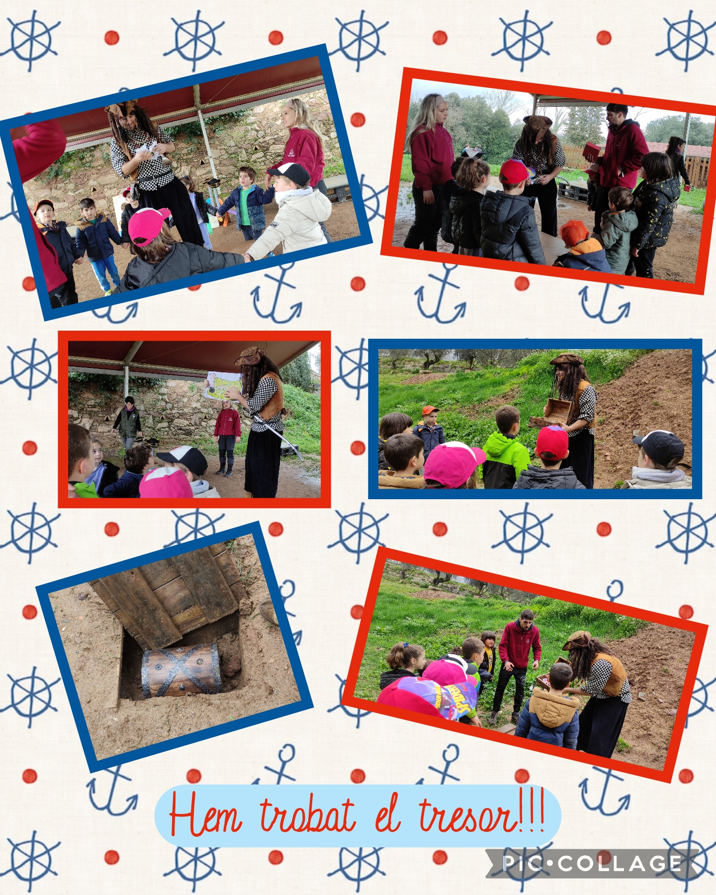 Avui ha estat l’últim dia de la nostra estada a la casa de colònies i també hem fet un munt d’activitats: hem trobat l’últim tros del mapa del tresor i li hem donat tots els trossos al pirata Malapata que ha fet màgia i els ha ajuntat tots. Quan ja els tenia hem descobert el lloc on havia el tresor i hem anat a buscar-lo. L’hem trobat a dins d’un cofre, eren unes piruletes!! Però aquestes estaven podrides i les hem deixat pels pirates dolents. El Malapata ha donat les nostres a la Maribel.