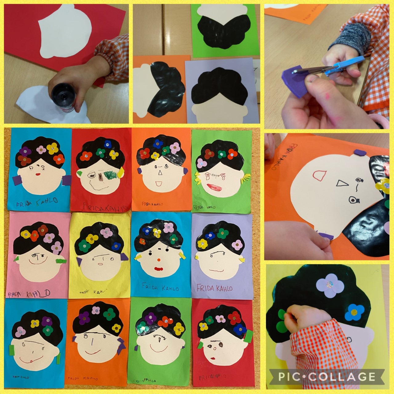 Hem après moltes coses sobre aquestes dones importants. També hem gaudit molt fent les manualitats. Les girafes hem fet un autoretrat de la Frida Kahlo. I els tigres unes titelles de les tres bessones.