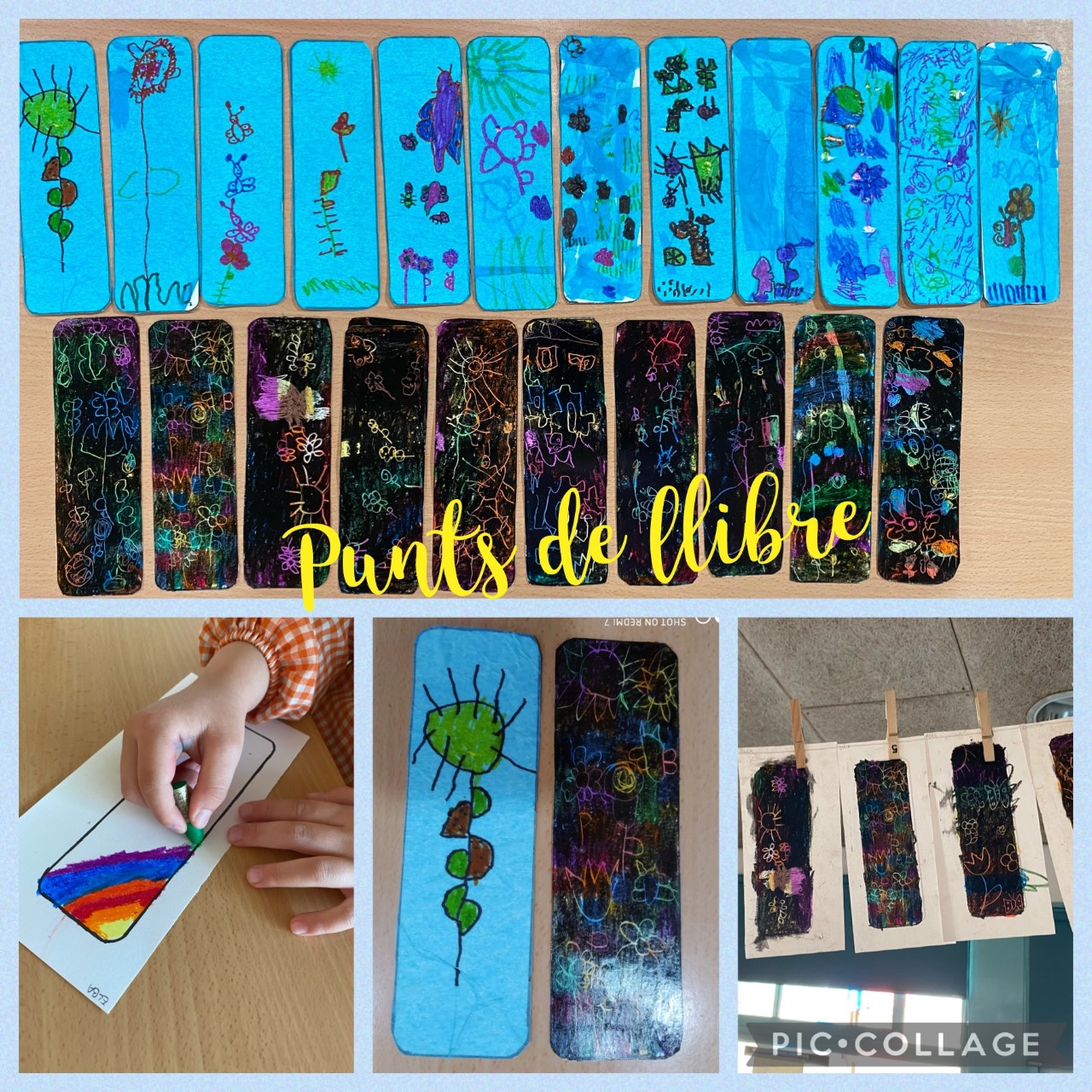 Seguint amb la tradició, els tigres i les girafes, hem fet un punt de llibre amb diferents tècniques plàstiques i també hem fet un dibuix pels Jocs Florals.