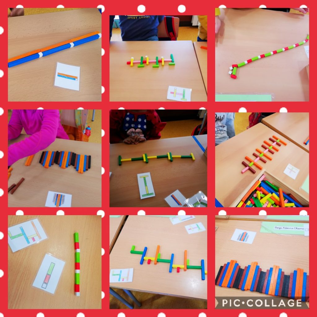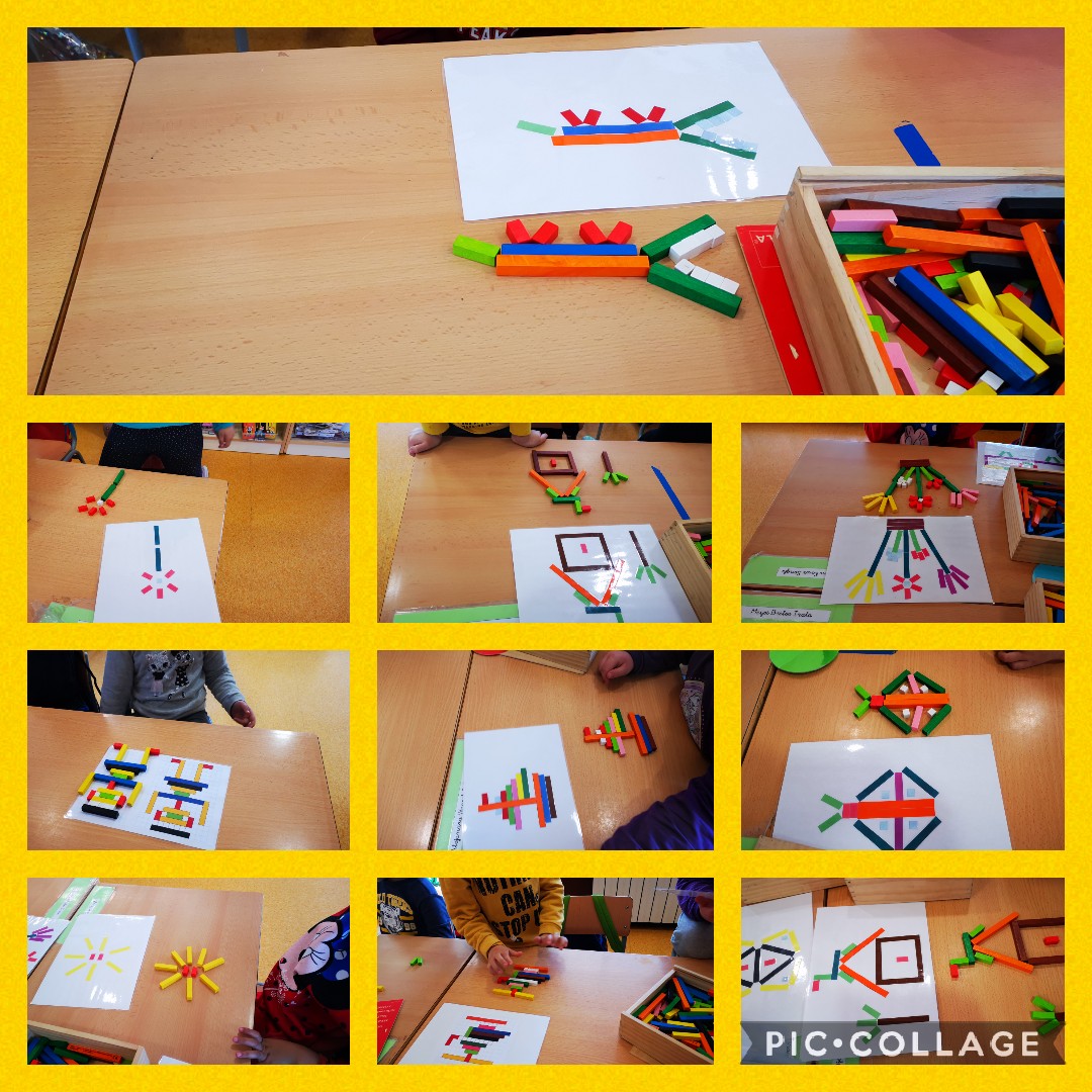 A l’hora de reglets, els nens i nenes han fet diferents dibuixos estipulats amb unes fotocòpies plastificades, i han fet diferents propostes de sèries amb reglets ( un espectacle visual de colors).