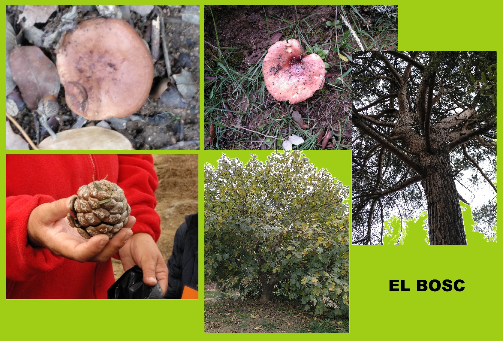 Vam començar el passeig pel bosc, observant bolets, pins i pinyes, roures, fulles …