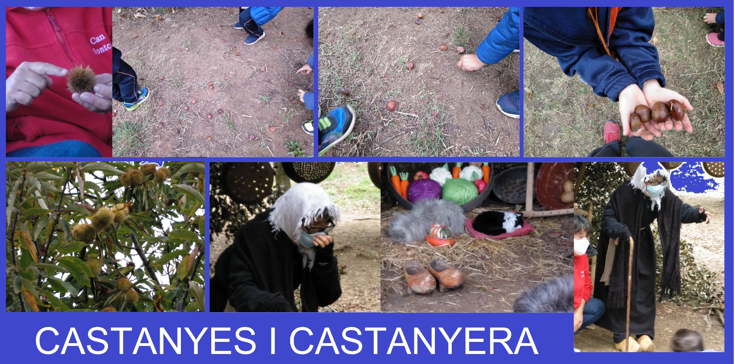 fins arribar al castanyer, estava ple de castanyes, moltes al terra. Vam collir moltes castanyes per portar-li a la castanyera. Quan vam arribar estava dormida, es va haver de despertar. Els nens i nenes estaven emocionats i li van cantar i ballar la cançó de la castanyera i el ball de la castanya.