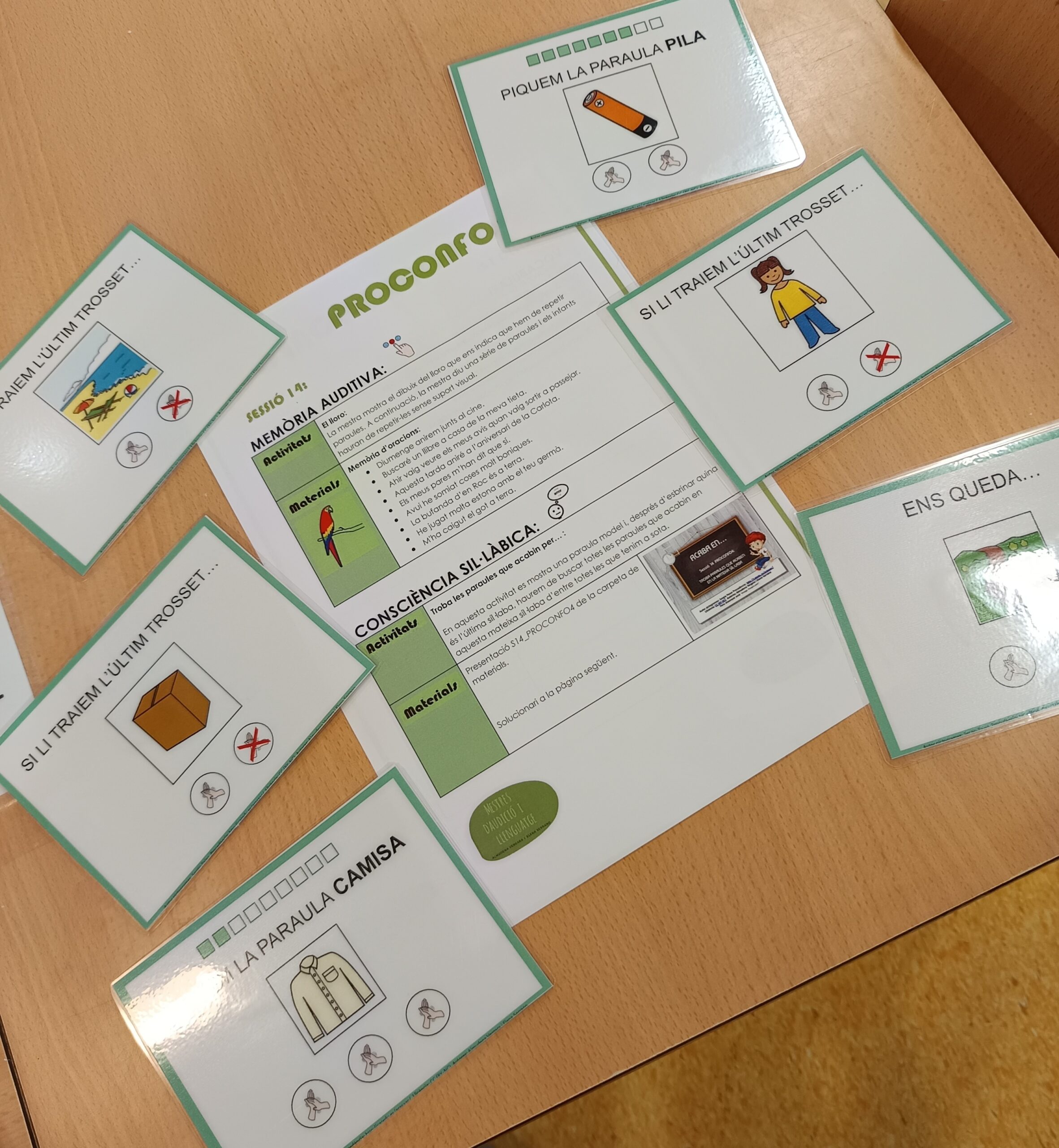 Respecte a la consciència fonològica, treballem la consciència del so abans de la grafia, jocs orals basats en la manipulació del llenguatge: identificació de sons, discriminació auditiva, jocs de rimes, segmentació de paraules en sons i síl·labes, repetició de patrons sonors. Activitats realitzades de manera lúdica i vivencial.