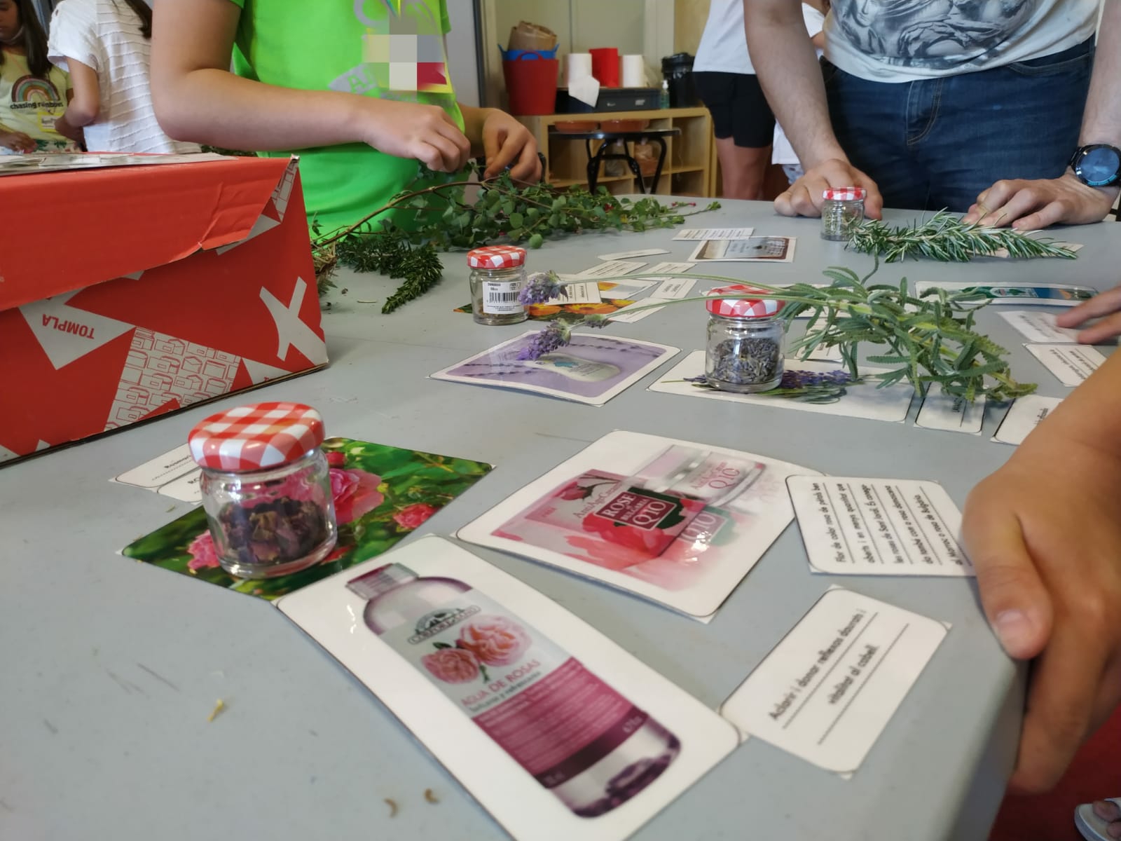 Després vam fer un taller sobre les plantes aromàtiques i els usos que en feien. Ens van explicar moltes curiositat sobre els hàbits d’higiene dels romans, com per exemple que anaven a fer les seves necessitats als lavabos públics (latrines) i compartien l’esponja o bé que glopejaven una barreja d’orina i altres substàncies després de rentar-se les dents.