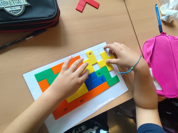 A la nostra escola, apostem per unes matemàtiques manipulatives, i utilitzem molts materials per aprendre els continguts que treballem: reglets, construccions, pentominos, blocs multibase, les TIC, fitxes de descomposició dels nombres…
