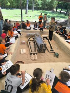Equipats amb pales, vam convertir-nos en autèntics arqueòlegs per un dia. En grups, vam excavar en diferents tombes recreades, descobrint objectes com amulets, ceràmiques i altres elements de l’època. Aquesta activitat ens va permetre aprendre sobre les tècniques d’excavació i la importància de la documentació en el treball arqueològic .
