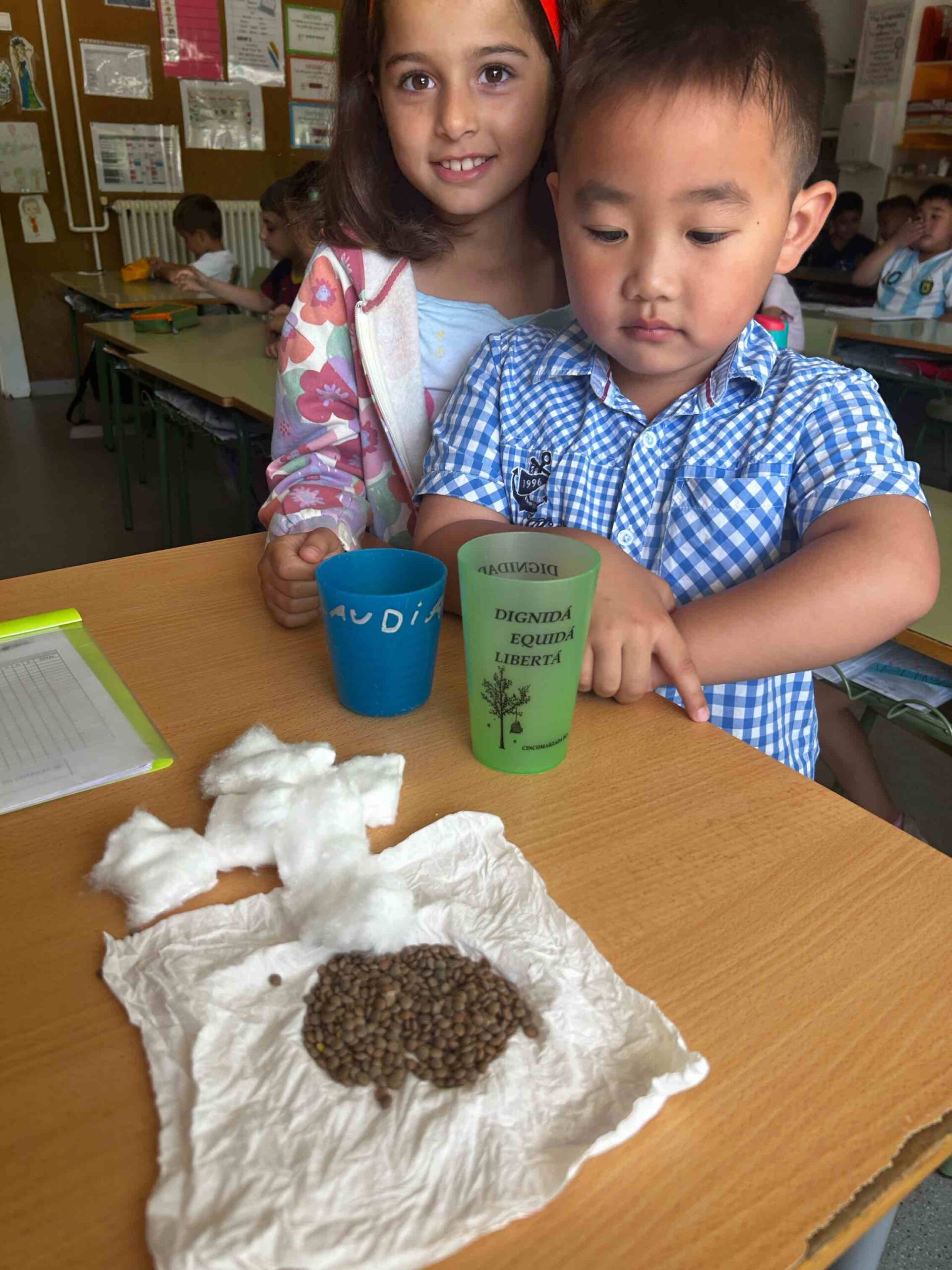 Alumnes de segon de primària de l’Escola Cambrils, juntament amb la mestra han dut a terme una plantada de diferents llavors (llenties, cigrons, alvocats). L’objectiu és crear i fomentar el respecte al medi ambient. (dins de l’àrea de coneixement del medi natural).🌱