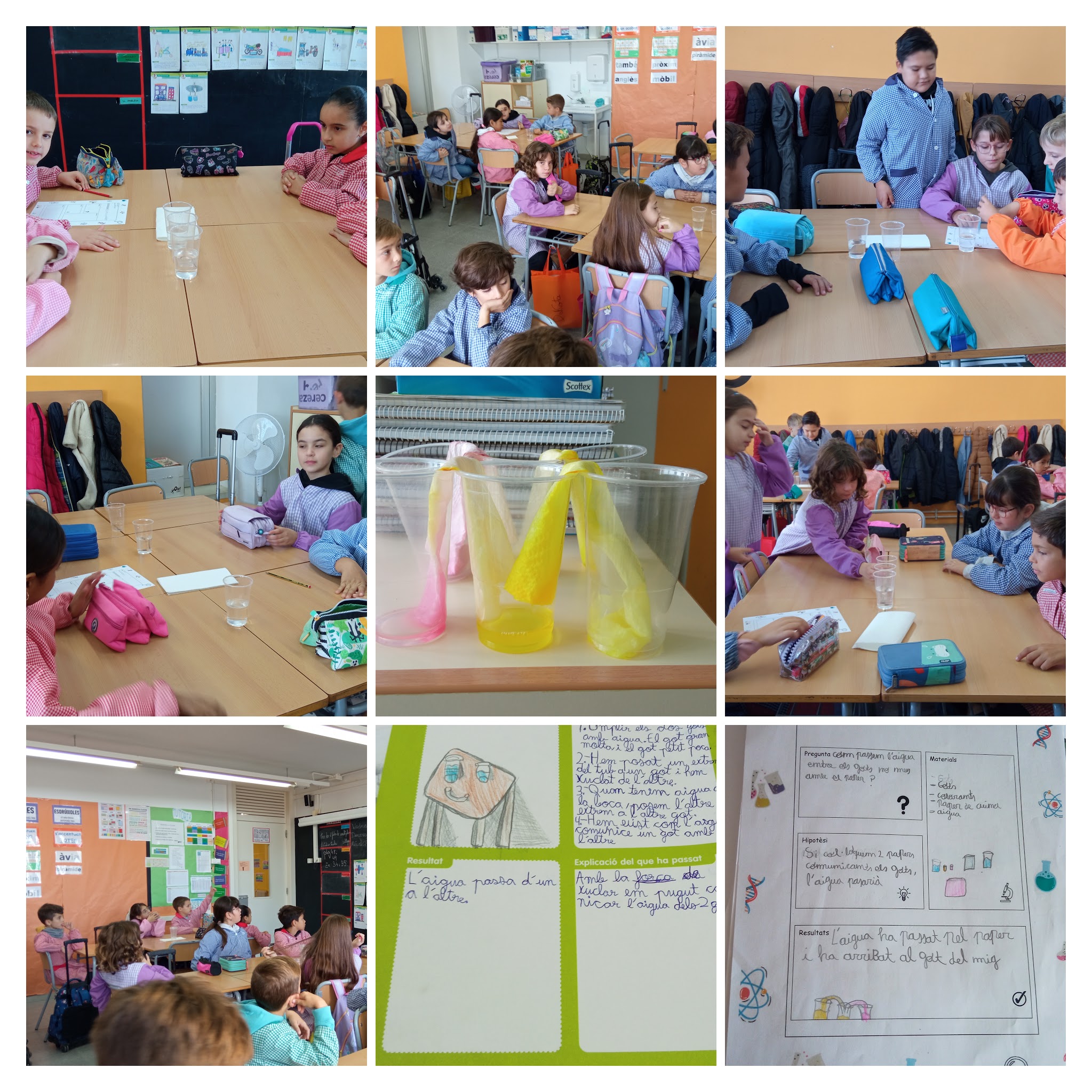 Amb la Marta, la practicant, vam fer un experiment per aprendre com funcionen els vasos comunicants.