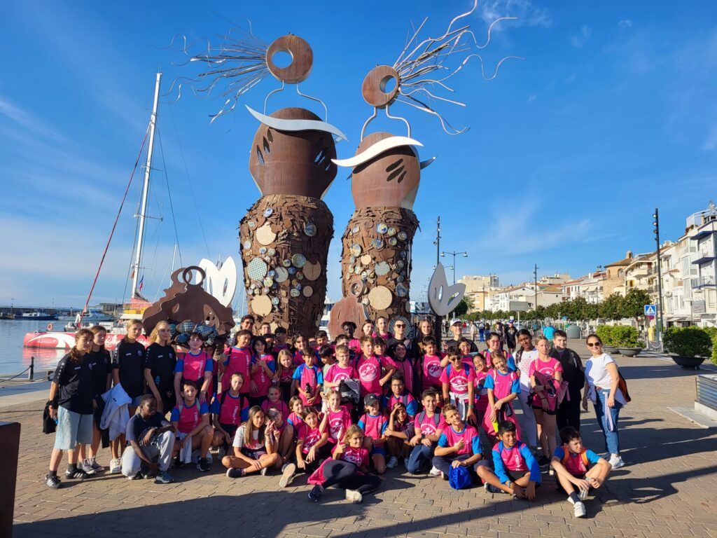 On Wednesday, the 6th graders acompanied the Polish students to the beach, where we played all together the “arrenca cebes” game, and later we had a walk around the port ending in the Town Hall (Ajuntament). There we could visit the building and we had a wonderful reception from the Mayor, Mr Alfredo Clua. At the afternoon, they moved to the 1st graders class where they did a Halloween Bat!