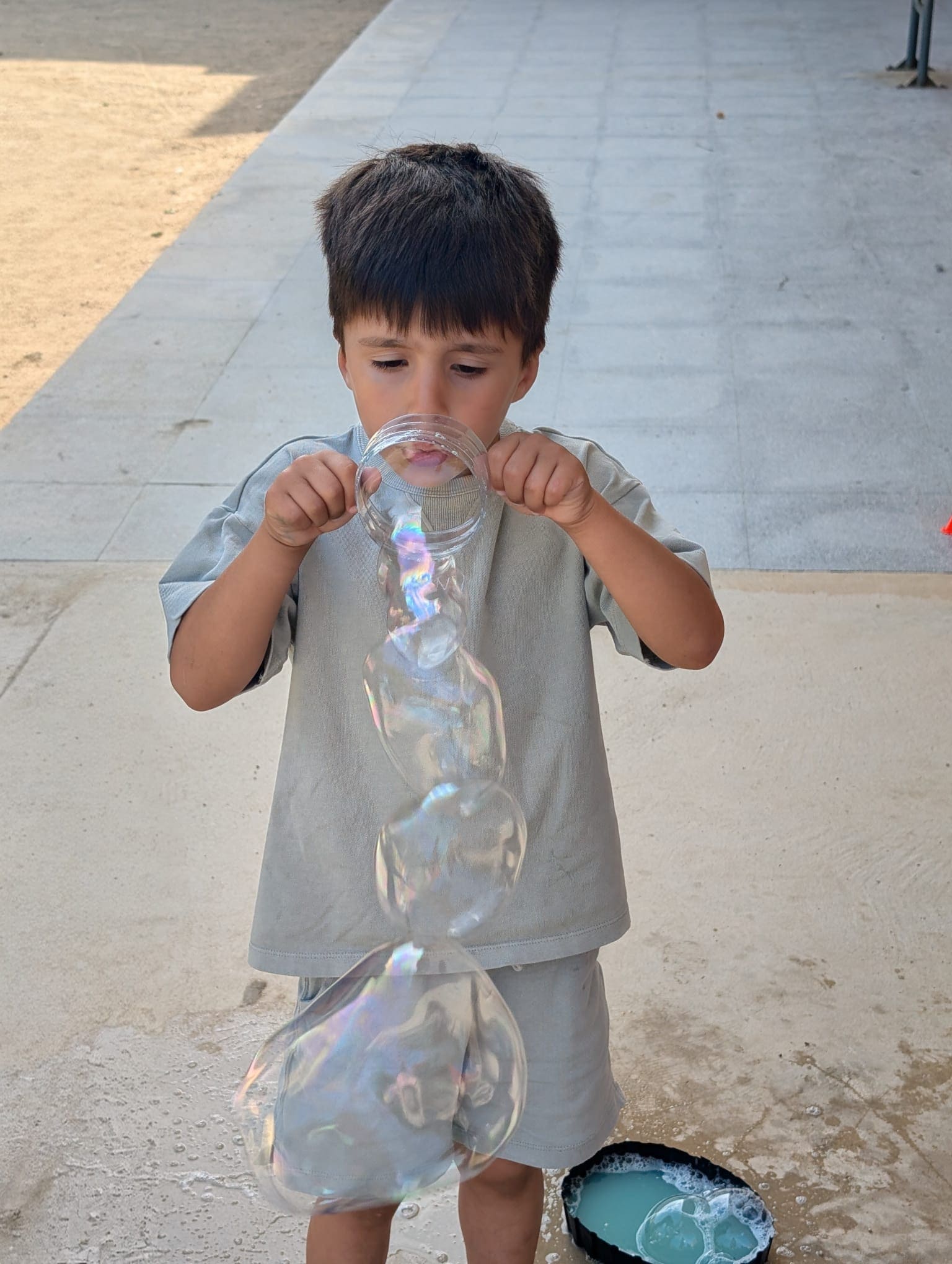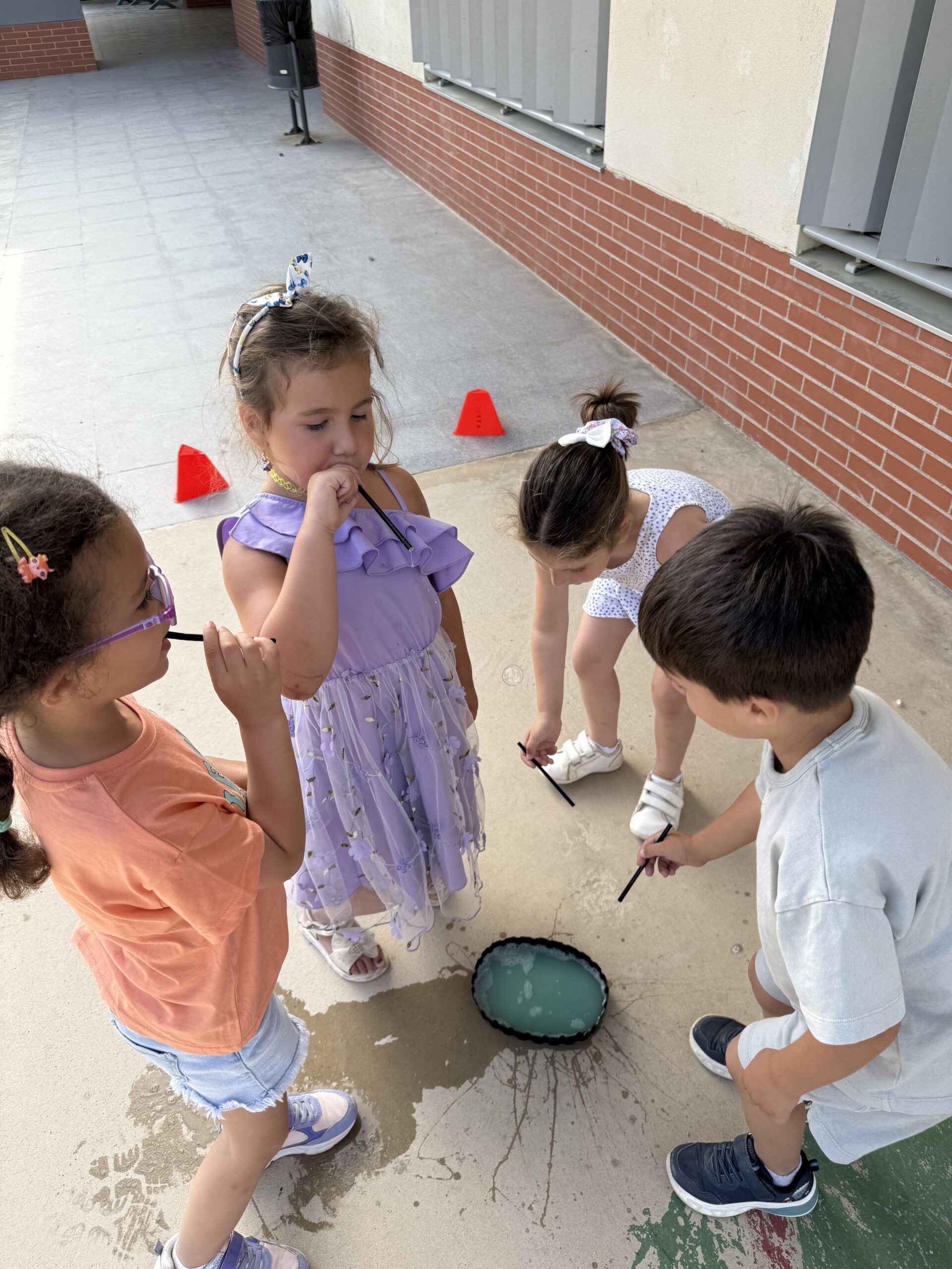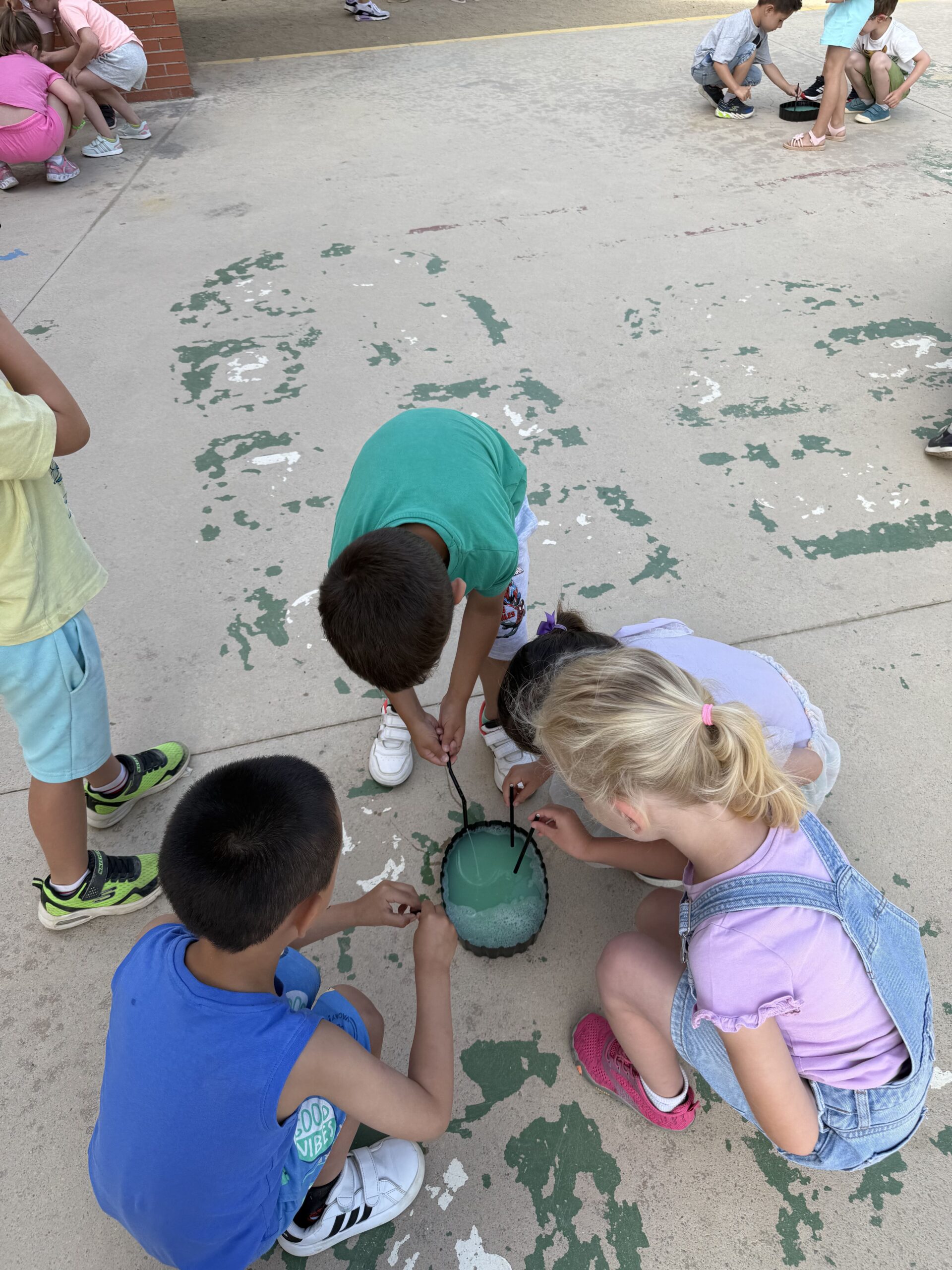 Amb diferents estris i tècniques, hem pogut experimentar amb bombolles de totes mides: petites, gegants, rodones, allargades… Algunes volaven ben amunt, d’altres explotaven de seguida, i d’altres ens envoltaven i ens refrescaven!