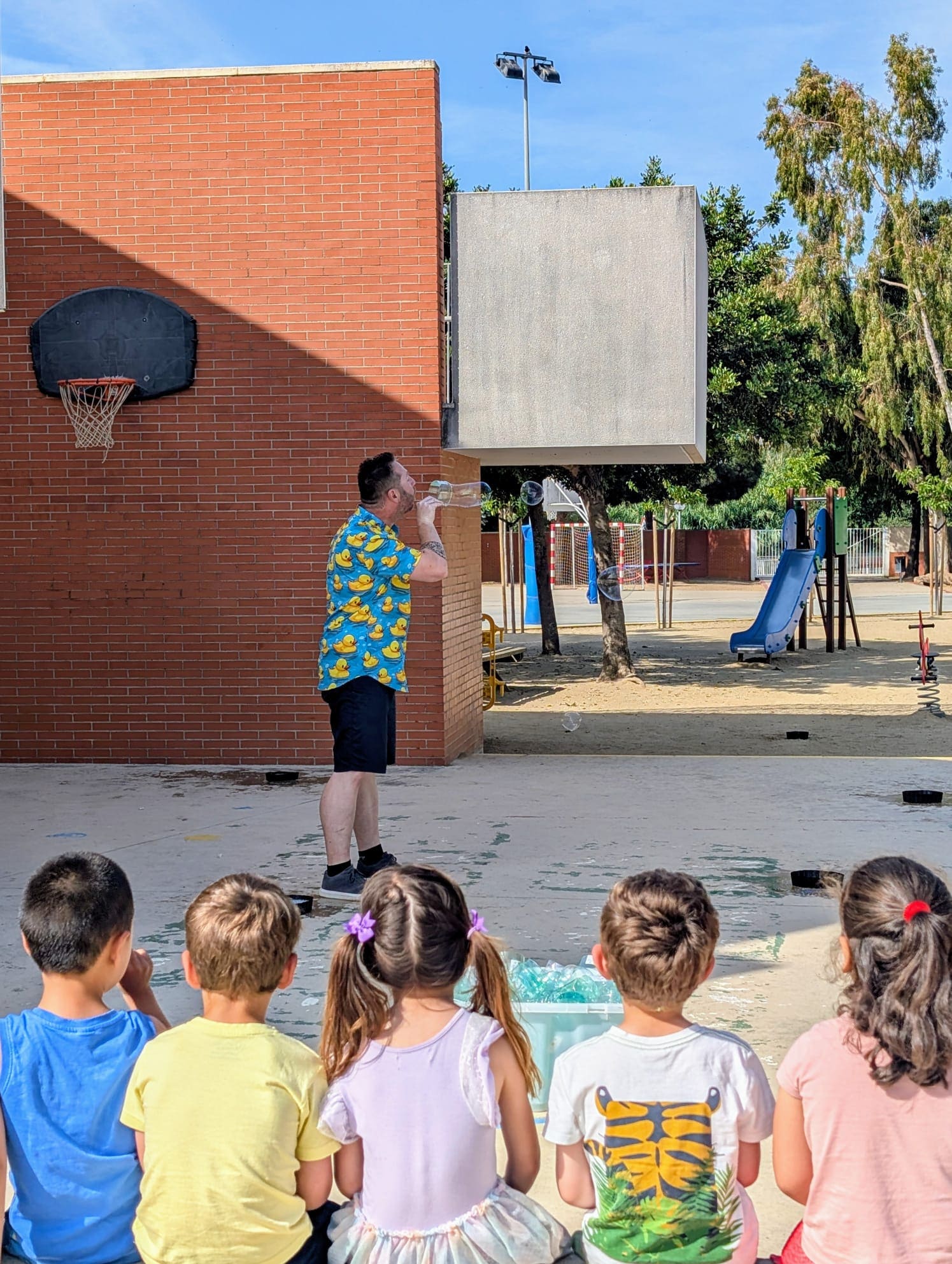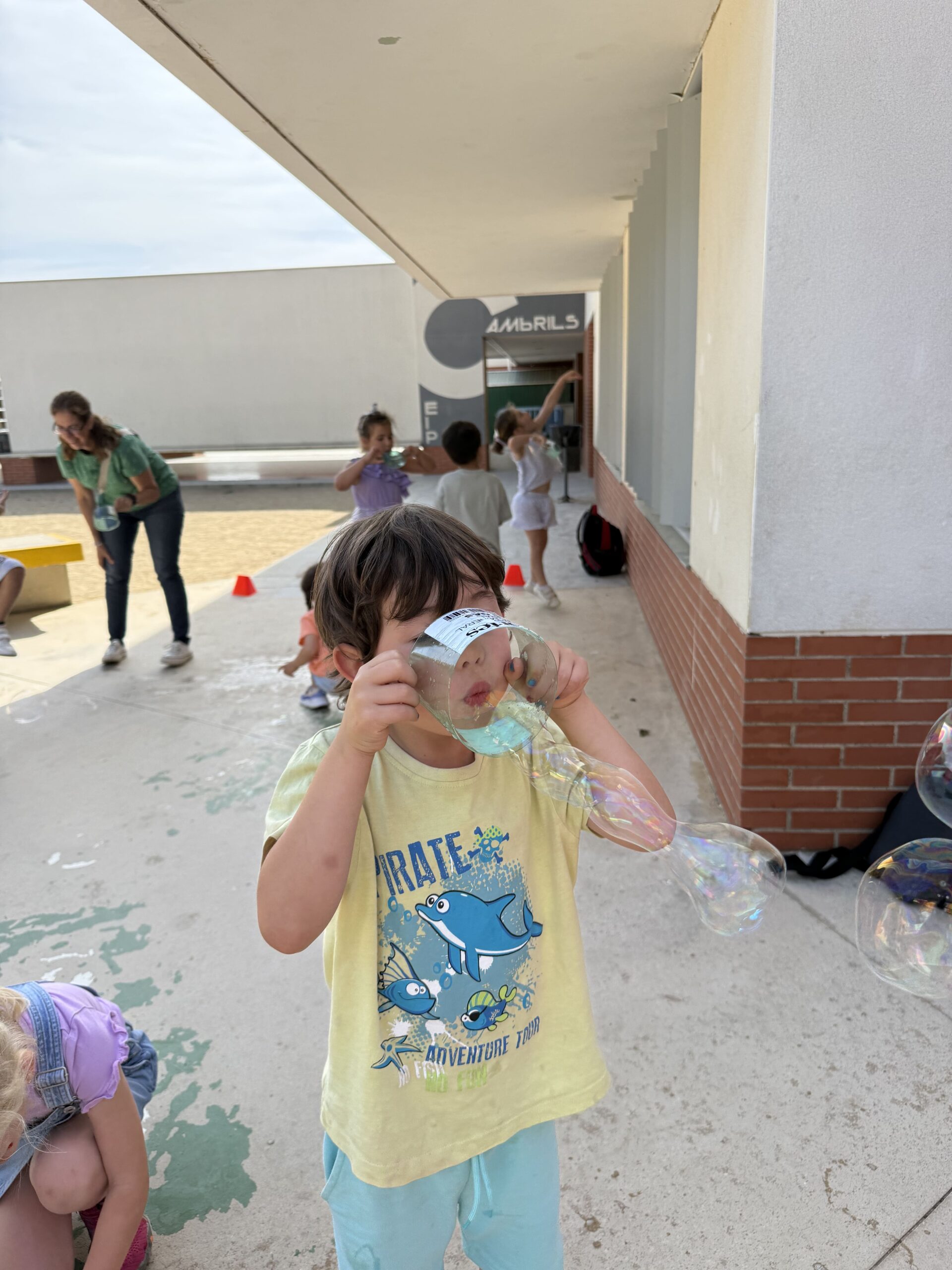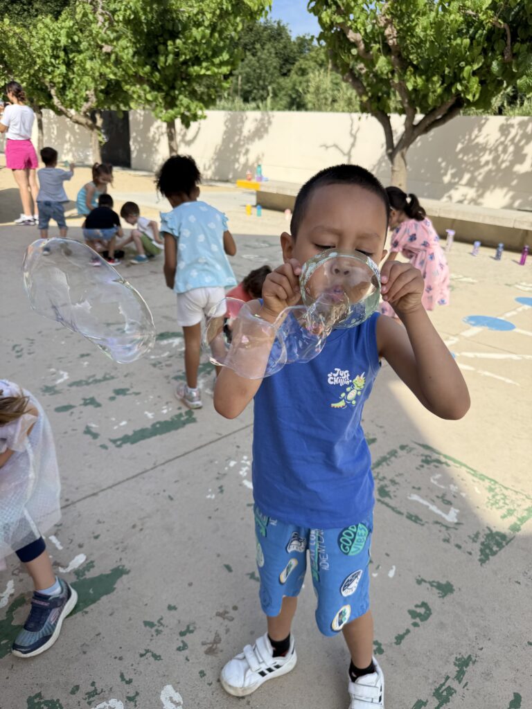 Aquest matí els infants d’I4 han gaudit d’un taller de bombolles a càrrec d’en “Dr. Babel”, que ens ha fet viure una estona molt màgica i refrescant!