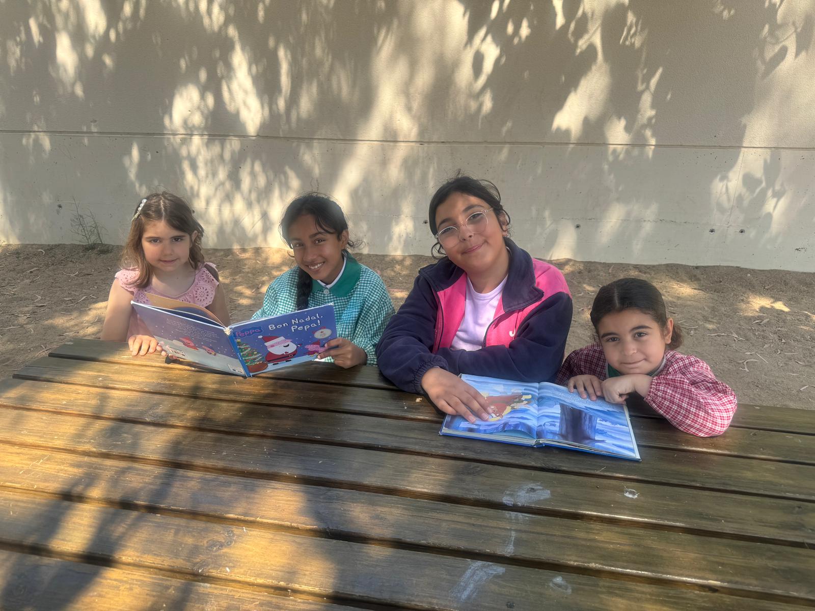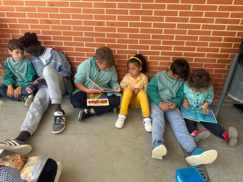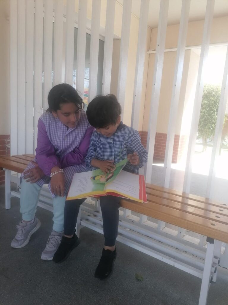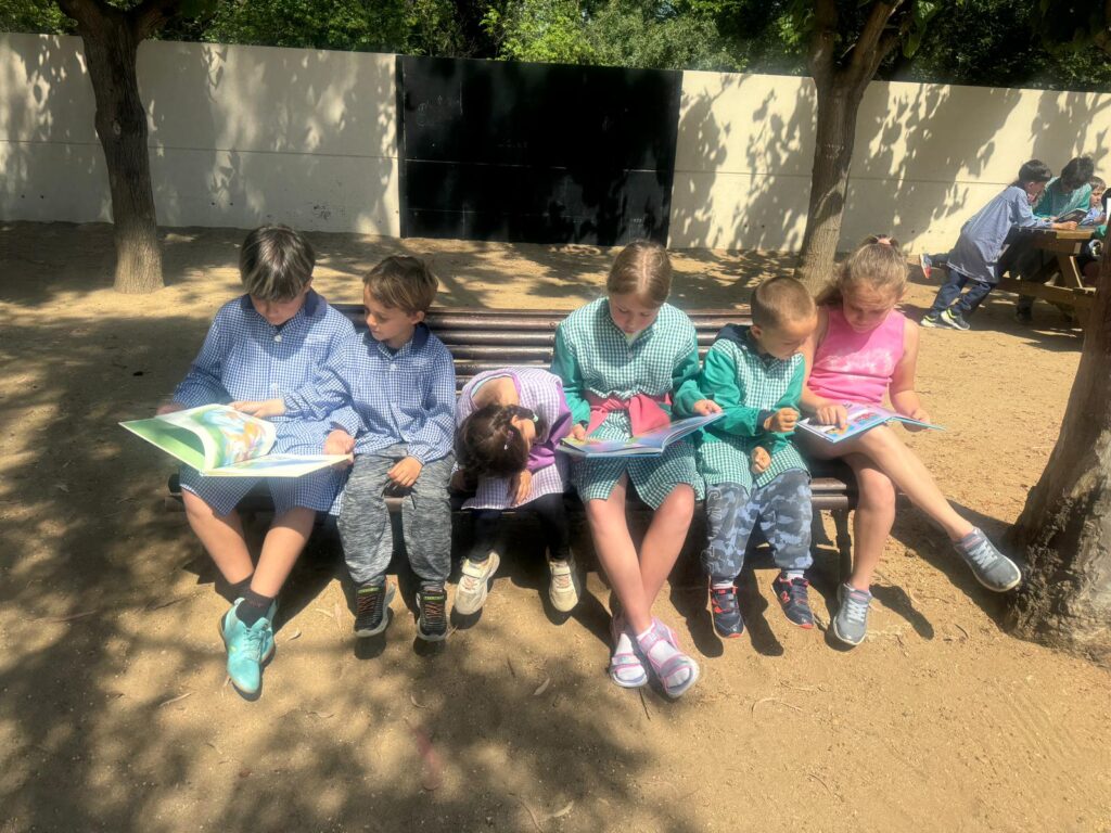 Amb l’arribada del mes de maig, i aquestes bones temperatures de les que gaudim aquests dies, aprofitem per fer l’activitat de Padrins de lectura a l’aire lliure.