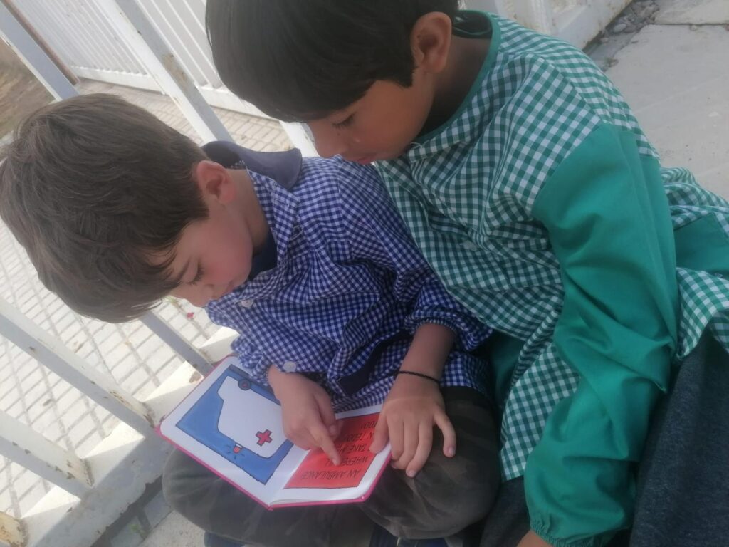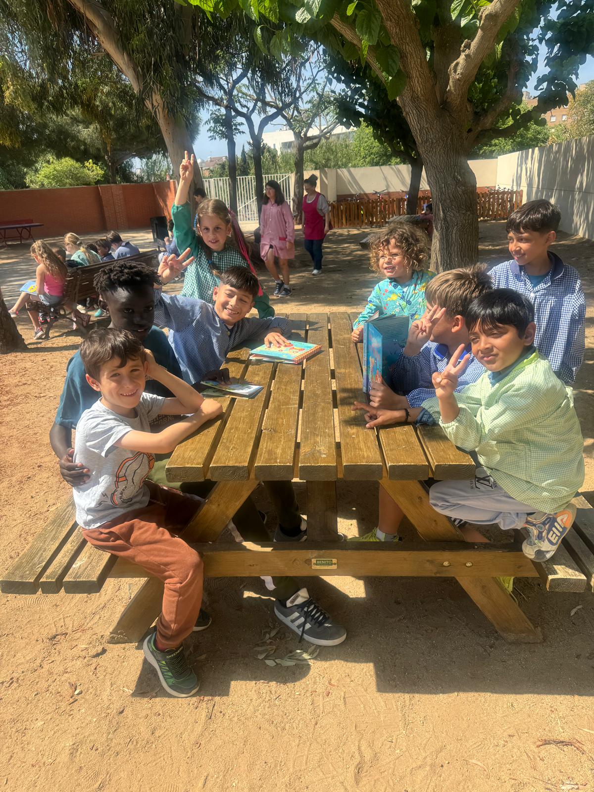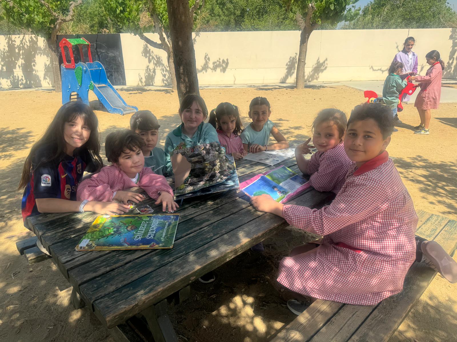 Amb l’arribada del mes de maig, i aquestes bones temperatures de les que gaudim aquests dies, aprofitem per fer l’activitat de Padrins de lectura a l’aire lliure.