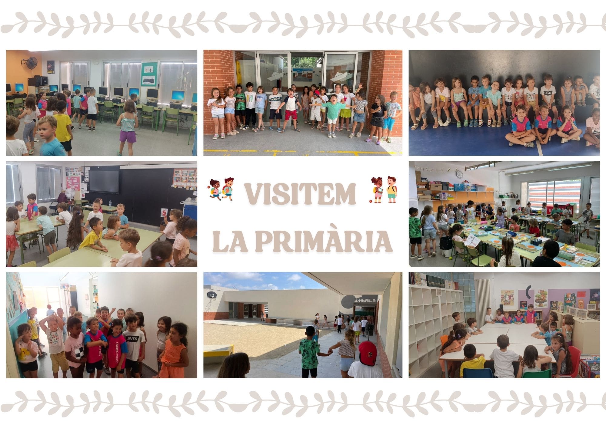 Els ha fet de guies un grup molt especial: companys i companyes de 1r, que aquest any han viscut en primera persona l’emocionant pas a la nova etapa. Amb molta il·lusió, els han ensenyat les instal·lacions (la sala d’informàtica, el gimnàs, l’aula d’anglès, la biblioteca, etc.), els han presentat als mestres i mestres i els han explicat com és el seu dia a dia a primària.