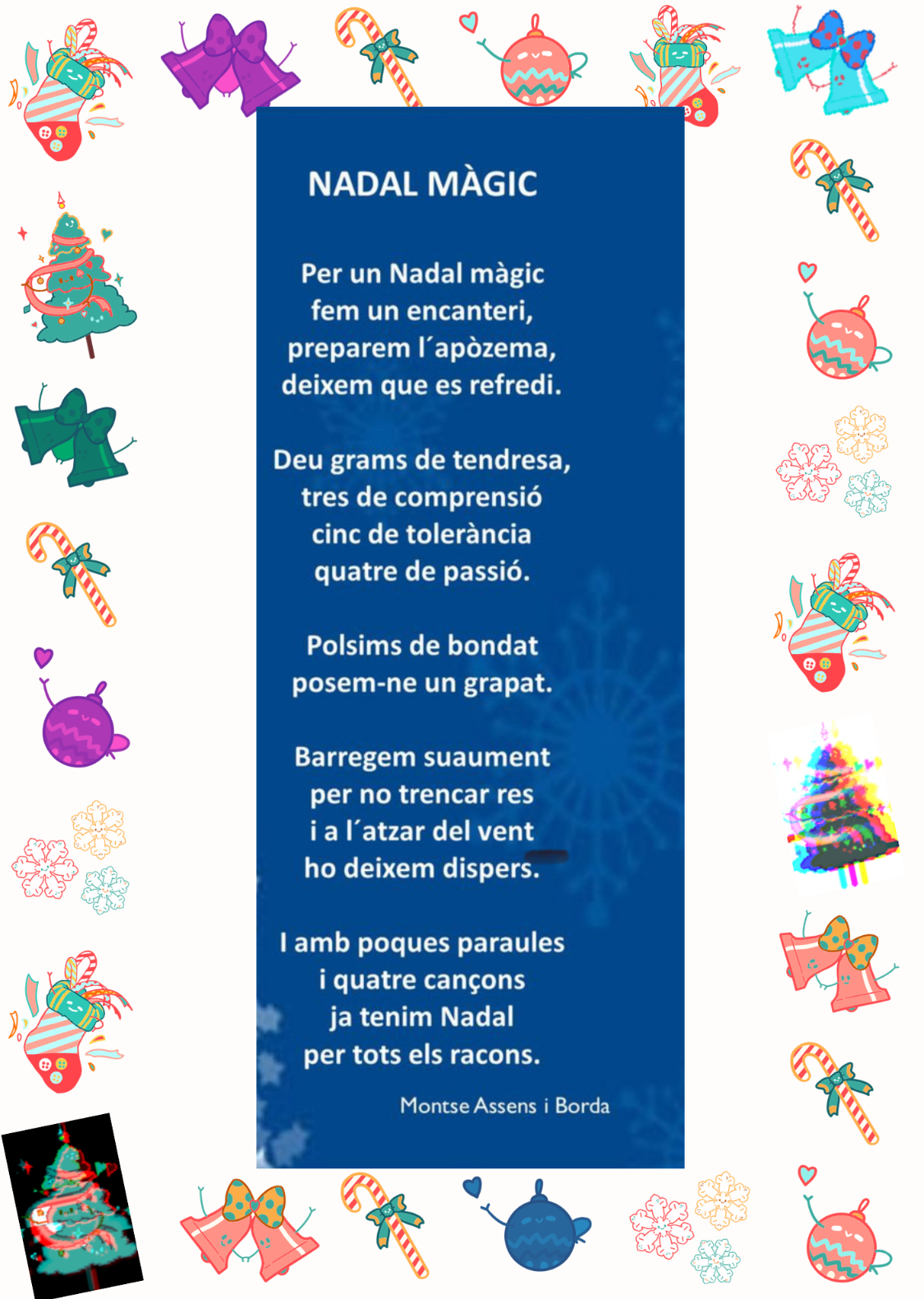 El seu treball no nomĂŠs omple d’alegria aquests dies festius, sinĂł que tambĂŠ ens recorda la importĂ ncia de la bondat i la solidaritat en el nostre dia a dia. Estem molt agraĂŻts per la dedicaciĂł i creativitat dels nostre alumnat.  Bon treball!