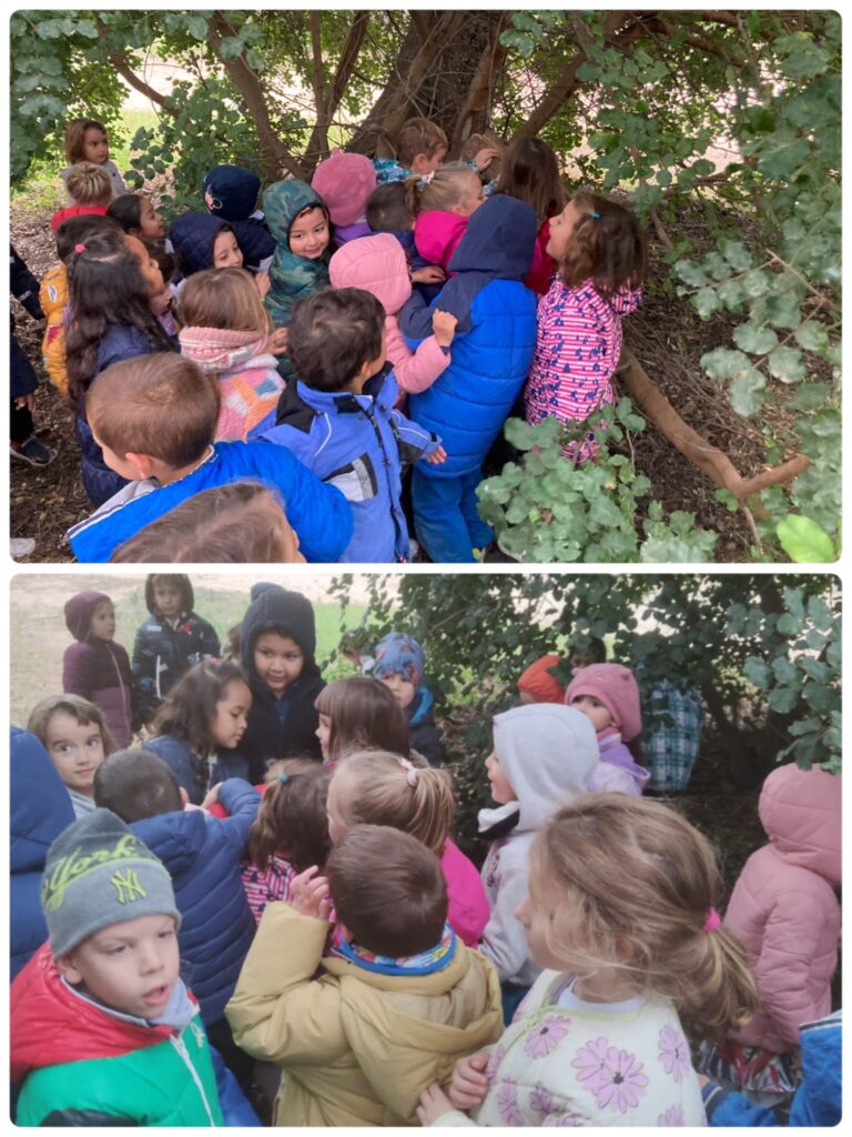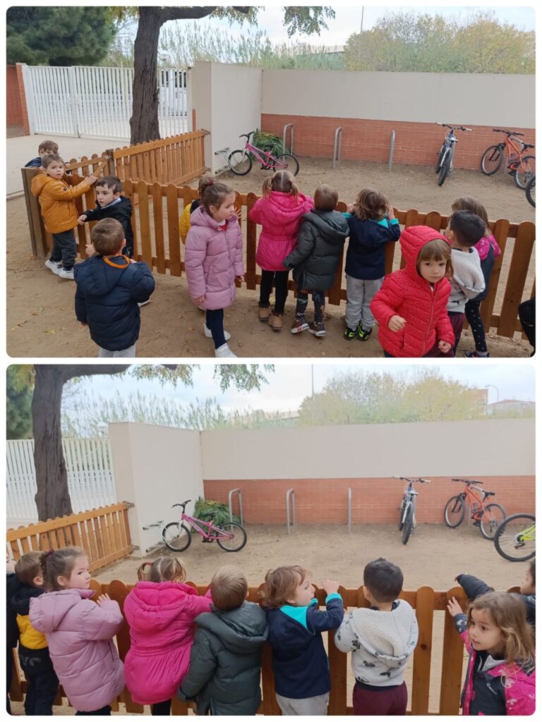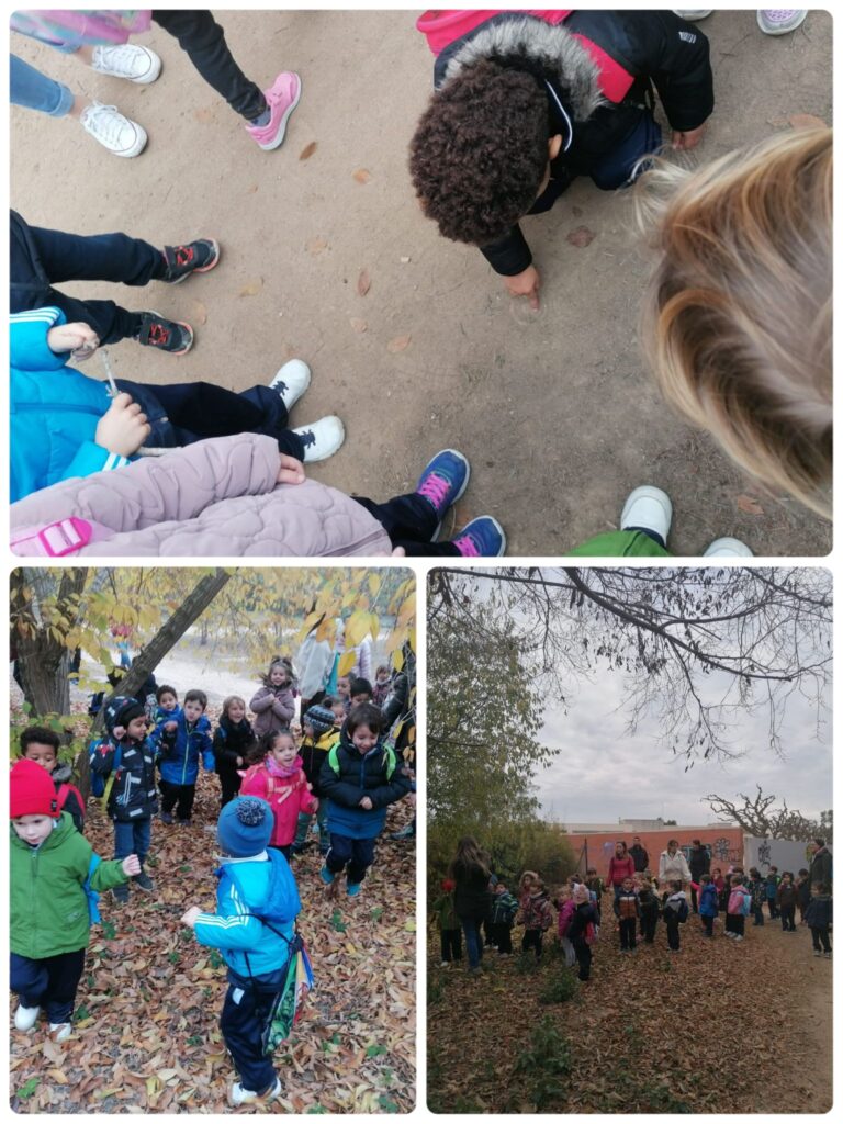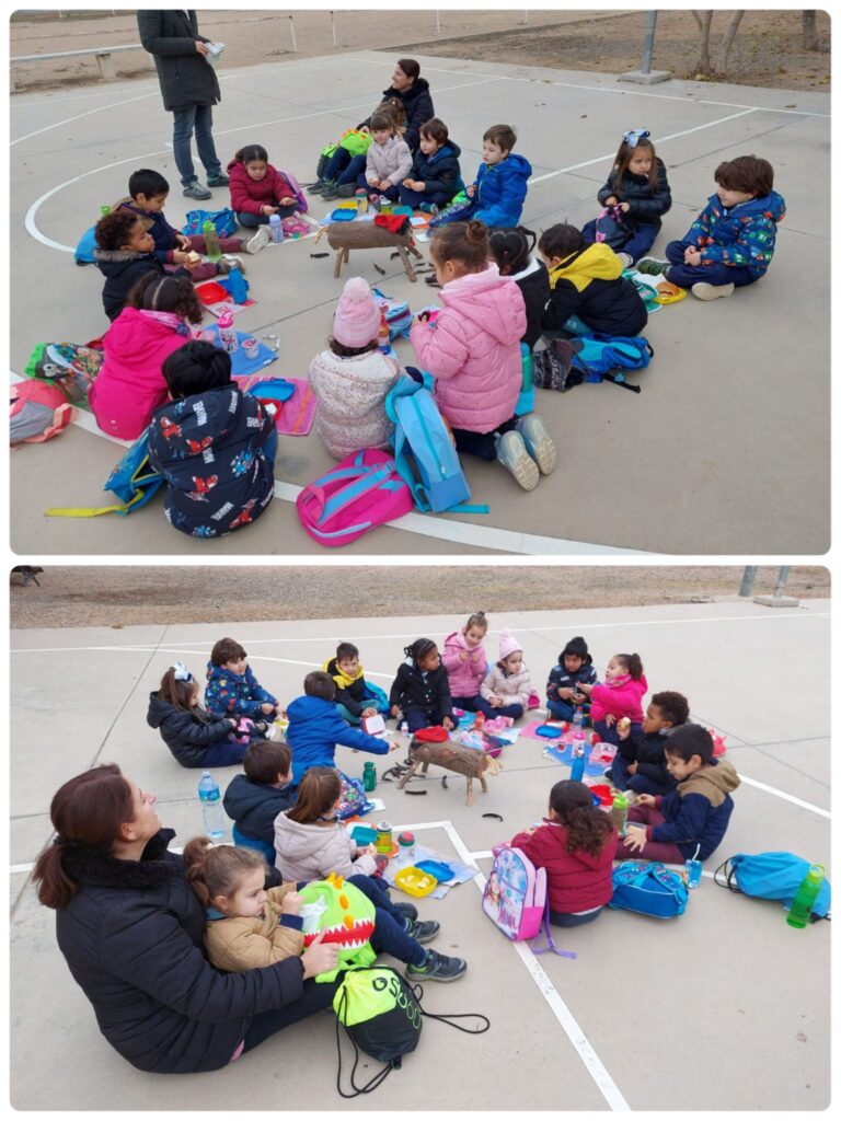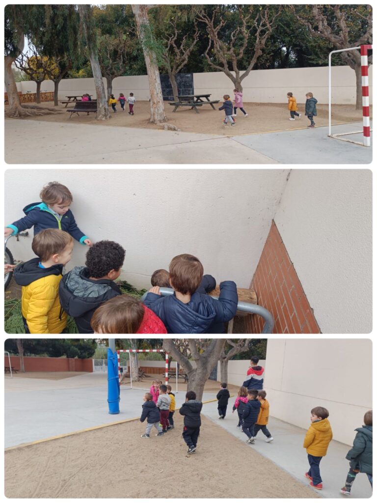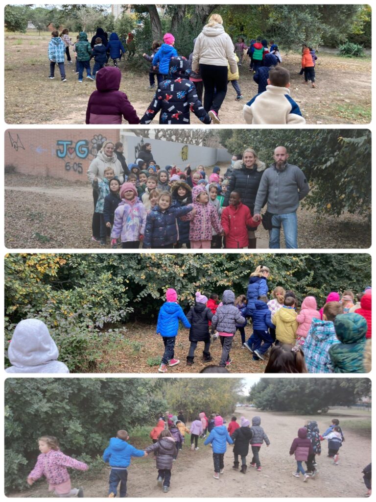 A I4, vam anar a buscar el Tió per la zona de la riera. Quan anàvem caminant, ens vam trobar petjades del Tió. Vam seguir-les fins que el vam trobar! QUINA EMOCIÓ! Després vam aprofitar per esmorzar amb el Tió i jugar una estona al parc.