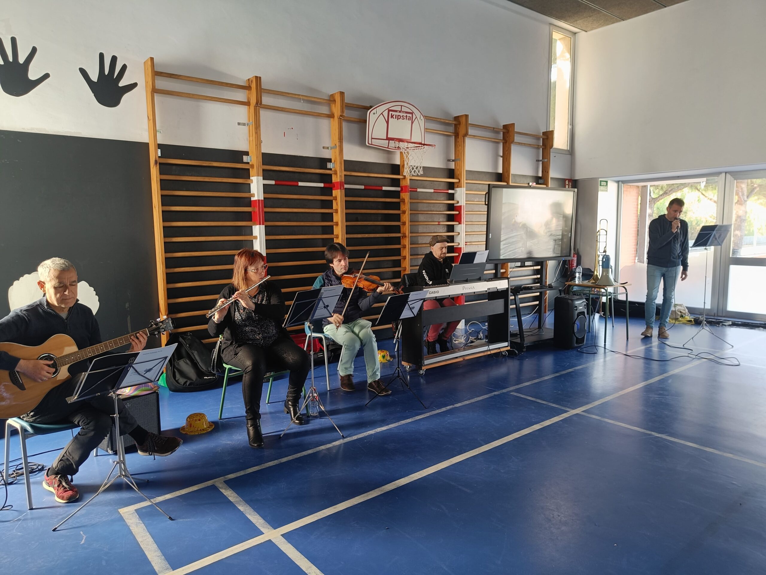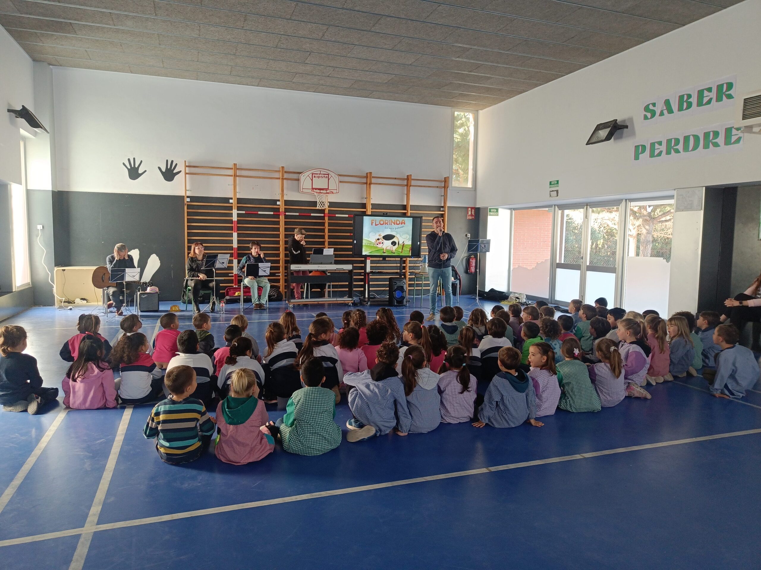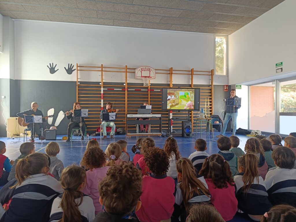 El dimarts 2 d’abril de 2024, els infants d’i4 i d’i5 hem pogut gaudir del conte musical “FLORINDA, LA VACA PALLASSA”. Ha estat molt interessant poder escoltar en directe la guitarra, la flauta travessera, el violí i el piano elèctric. Ens ha agradat moltíssim!!