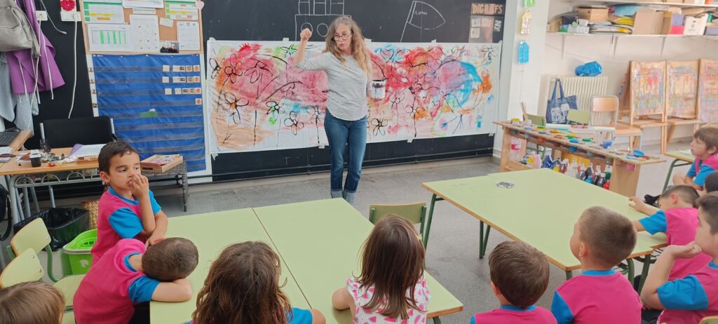 Les nenes i els nens de la classe d’i5A hem tingut una visita molt especial. La Nuri Mariné, artista cambrilenca i tieta d’un dels alumnes, ha vingut a compartir amb nosaltres el seu art.