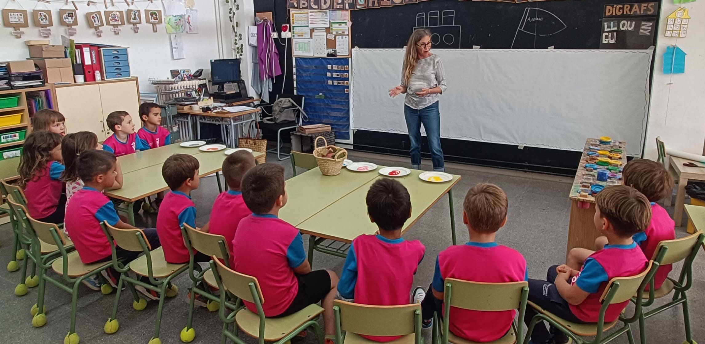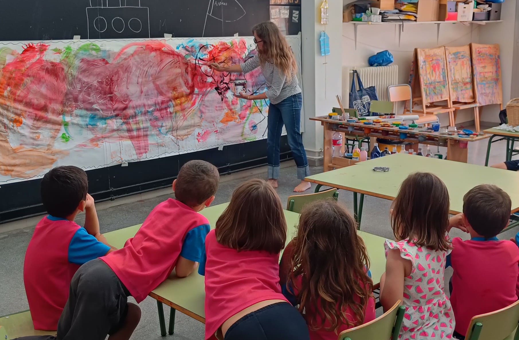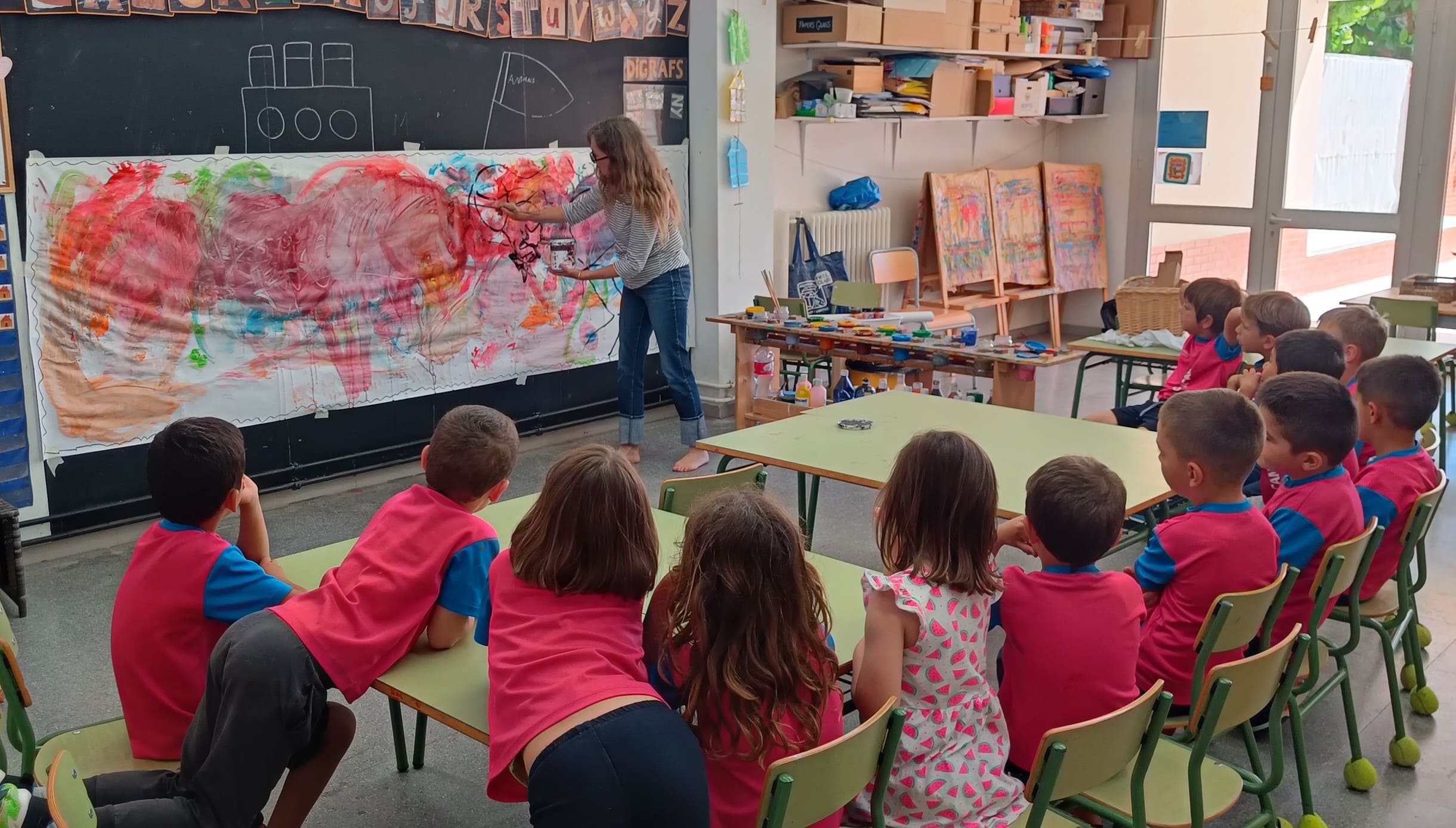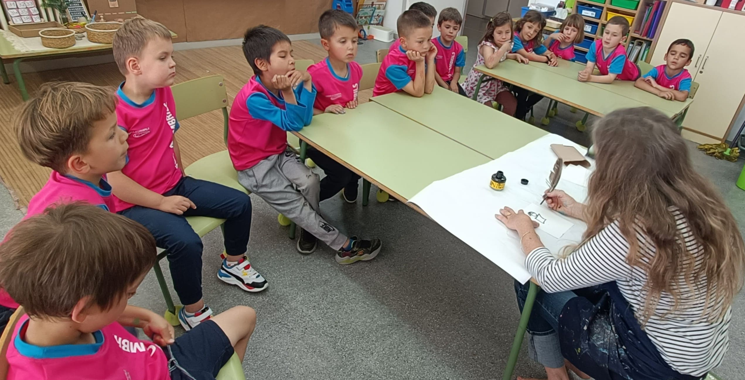 Les nenes i els nens de la classe d’i5A hem tingut una visita molt especial. La Nuri Mariné, artista cambrilenca i tieta d’un dels alumnes, ha vingut a compartir amb nosaltres el seu art.