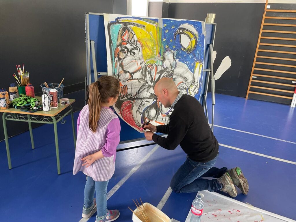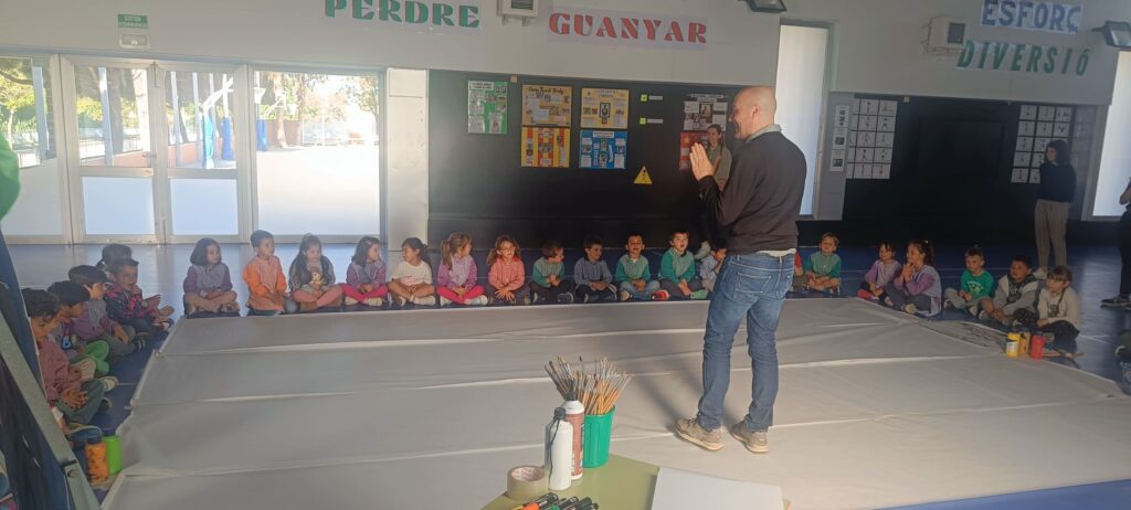 L’artista cambrilenc David Callau ha vingut a l’escola per fer una activitat amb els nens i les nenes d’i5. Hem tingut la sort de poder compartir un matí amb ell, gaudint del seu art i creant una obra col·lectiva. Ha estat un matí diferent molt divertit. Hem gaudit molt de la seva companyia. Ens ho hem passat molt bé!
