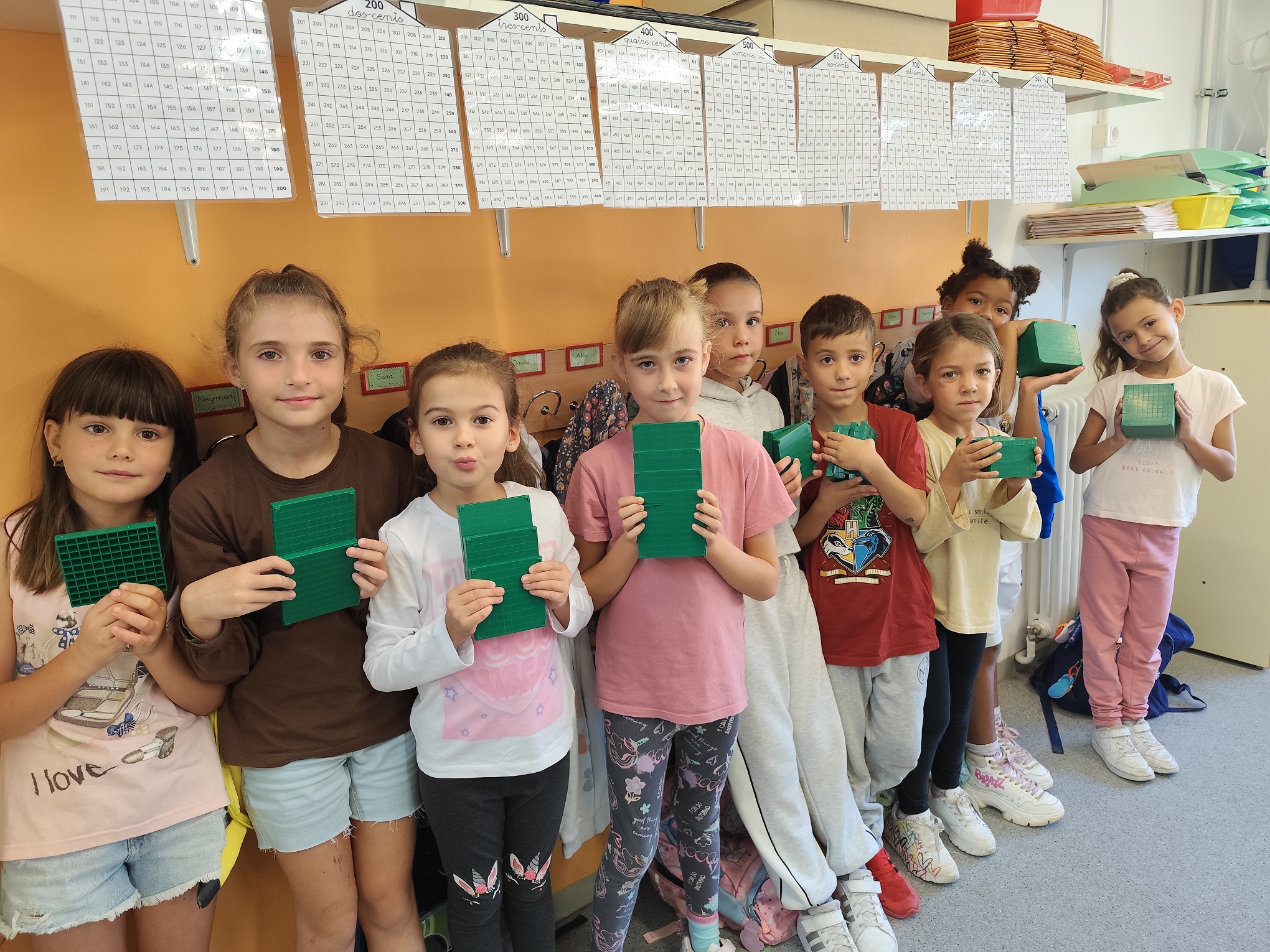 A segon estem descobrint què és una centena. Ens fa molta il·lusió començar a treballar amb els nombres de tres xifres!