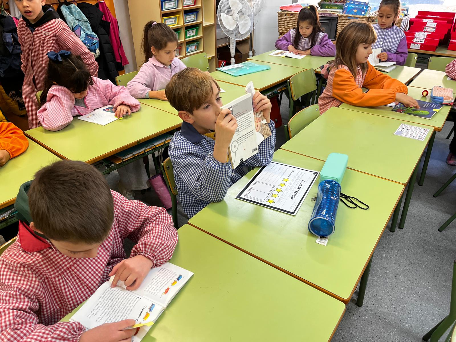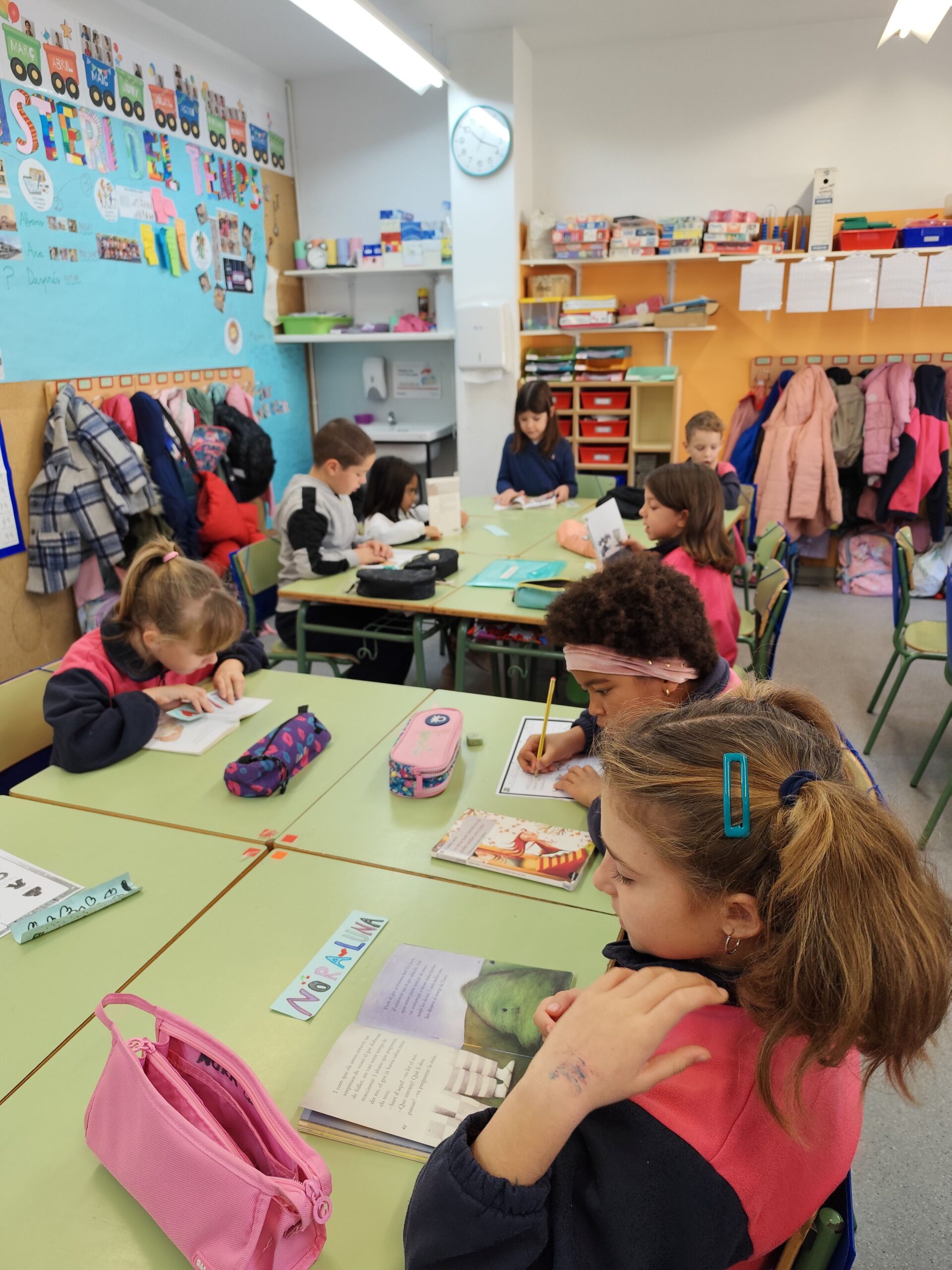 Tenim diverses estones al llarg de la setmana en què cadascú tria el conte que més li interessa i en silenci el llegim individualment. Al final de cada llibre omplim una fitxa de lectura on valorem el conte triat, i per acabar marquem en una graella els llibres que anem llegint.