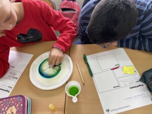 EUREKA SCIENCE PROJECT Núria Figueras22/02/23 Què passa si afegim sabó a la llet? Les molècules de llet es mouen!!!
