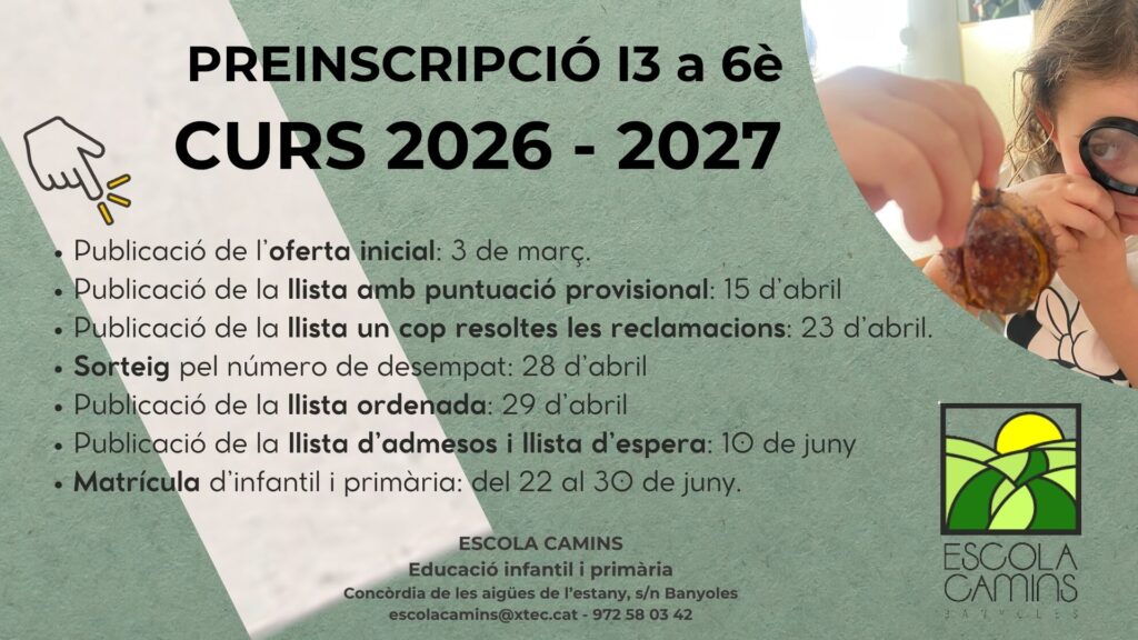 L’Escola Camins ha participat enguany en el 3r Festival de Curtmetratges Contrarellotge 2026, organitzat per l’Ajuntament de Sant Gregori.Ha estat una experiència creativa i engrescadora per a tot l’alumnat implicat.Durant una setmana intensa, hem treballat en equip per crear un curtmetratge des de zero.El procés ha inclòs l’elaboració del guió, la gravació i l’edició del […]