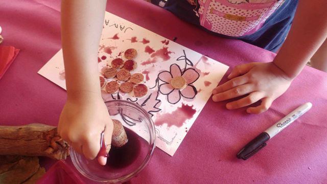Pintem amb vi. Taller de pintura amb vi sense alchol i reciclatge de taps de suro.