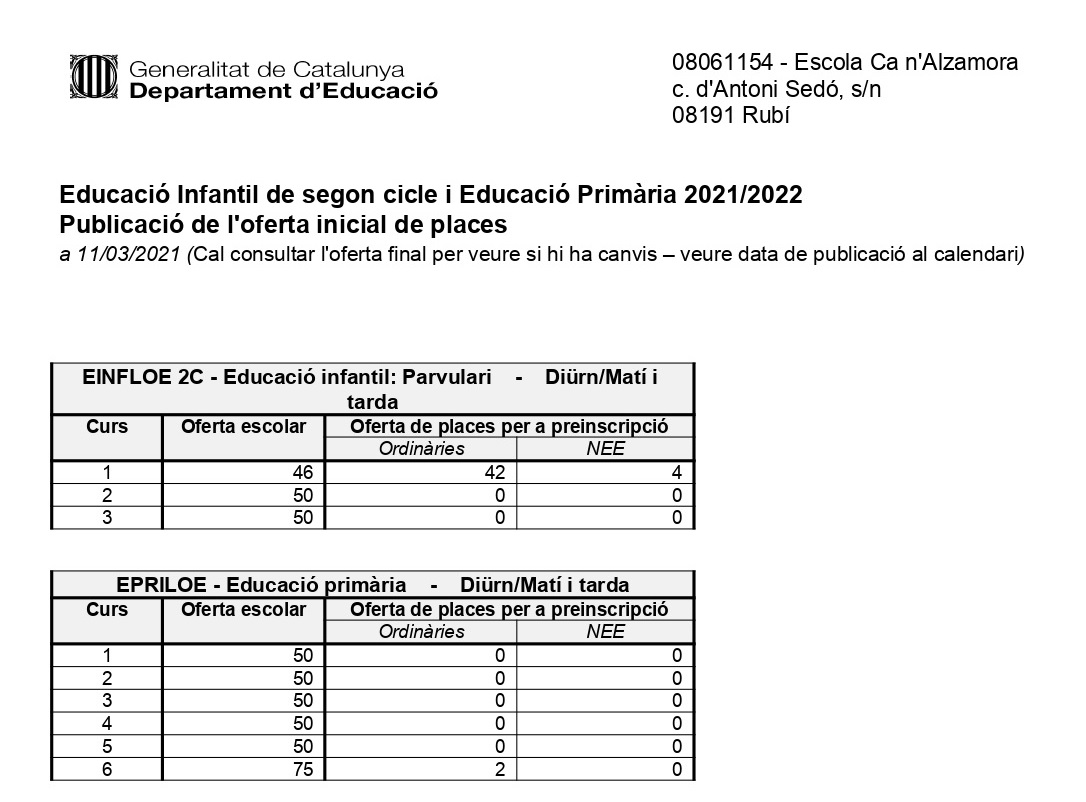Preinscripció curs 2021-22