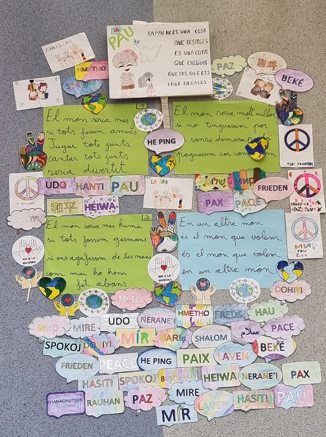 29/03/22Tota la comunitat educativa de l’escola Ca n’Alzamora treballem per la Pau i la no violència. Estem convençudes que molts granets de sorra com aquest petit acte per la Pau, que hem celebrat a la nostra escola, poden contribuir a fer un món millor. Els infants més grans han llegit unes reflexions sobre la Pau i tots plegats i totes plegades hem cantat amb una sola veu “El món seria molt millor si tots fóssim amics…”.