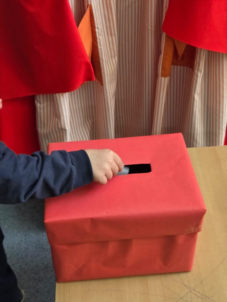 Ahir, tots els infants de l’escola van participar d’un procés electoral per triar el nom del germanet de la nostra geganta Matilda.