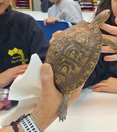 Van aprendre característiques més específiques de la serp albina, del llangardaix, de la tortuga d’aigua i de la granota. També els van poder tocar per conèixer la seva textura. Feu clic a la imatge i trobareu l’àlbum de 3r i 4t, “Taller de rèptils”.
