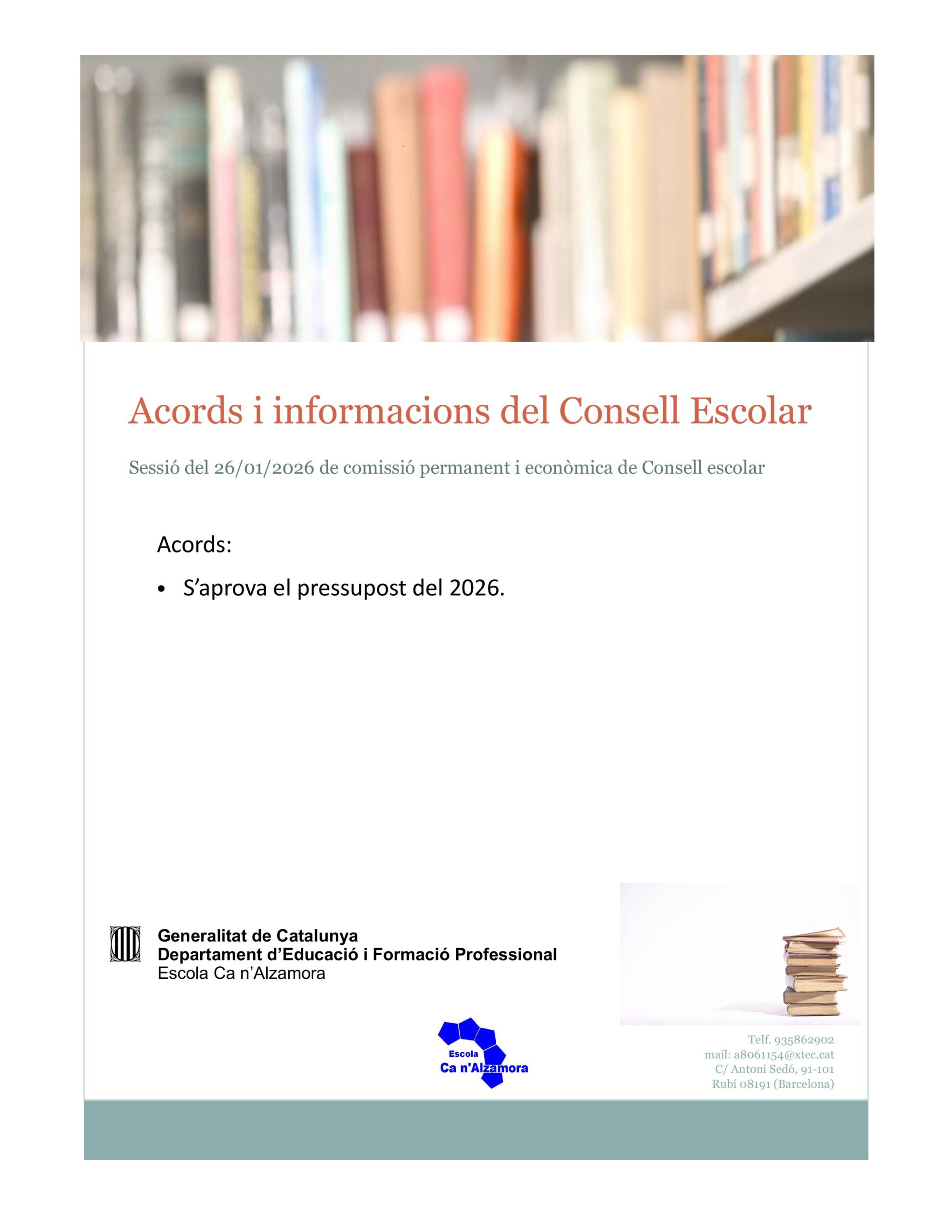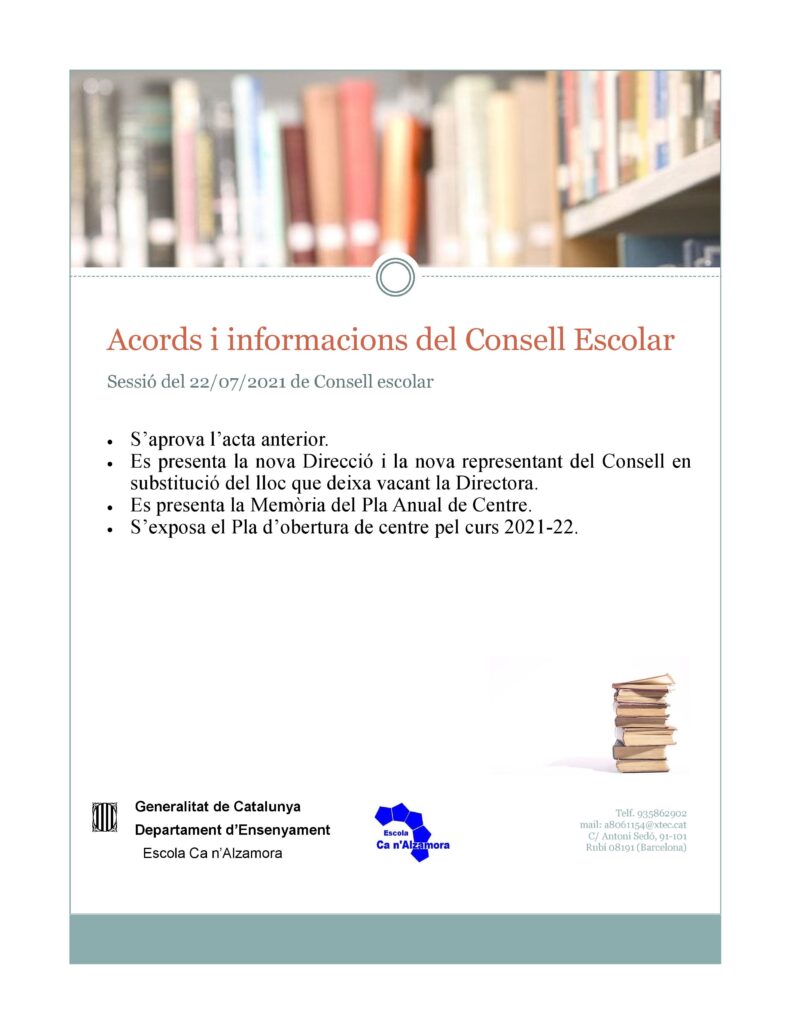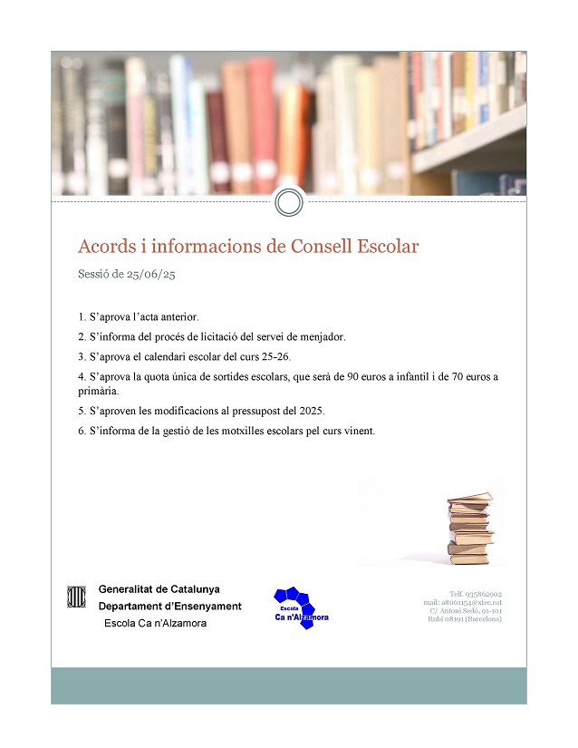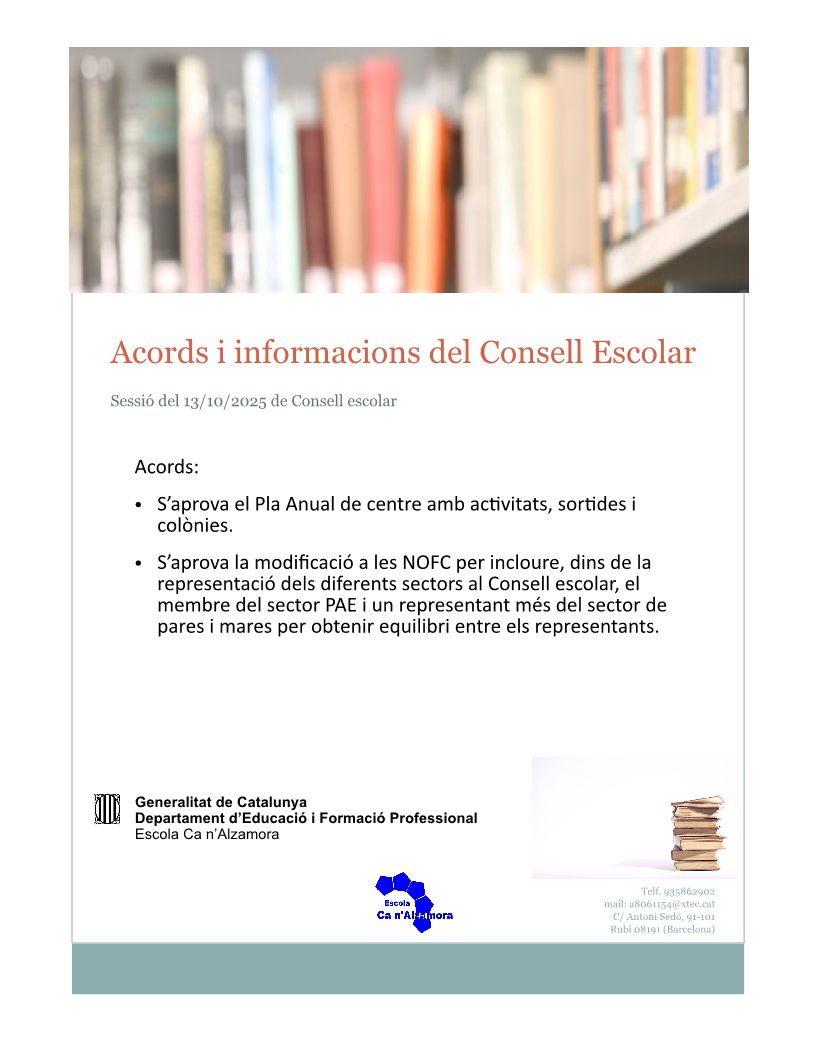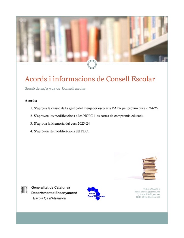 Informacions i acords del Consell Escolar