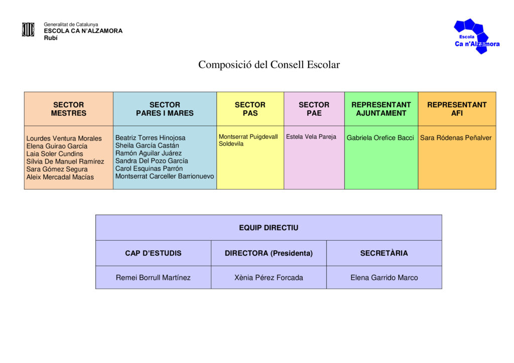 El Consell Escolar és l’òrgan de govern de l’escola i està format per: