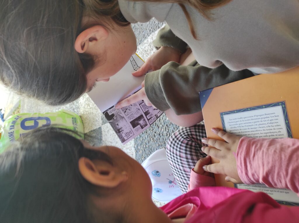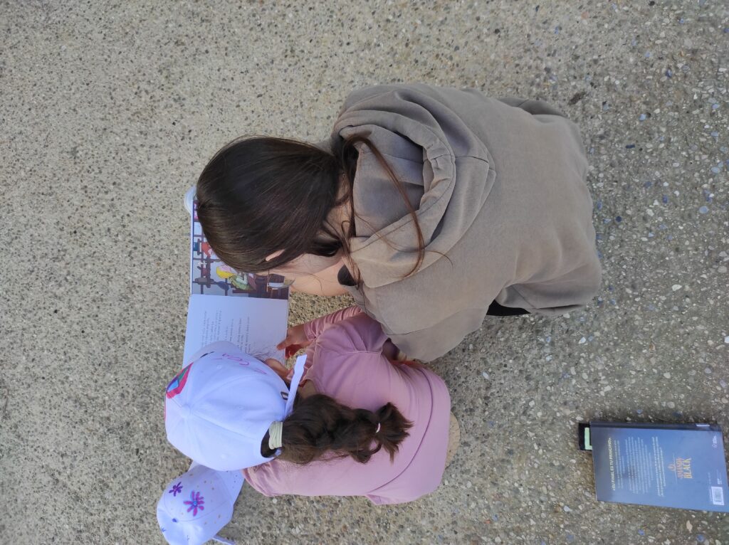 Després hem anat a la paradeta que organitza l’AFA a buscar el llibre que se’ns regala per Sant Jordi i finalment hem acabat amb un apadrinament lector amb la colla de mitjans.