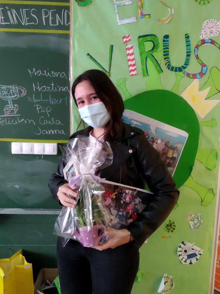 Hola pares i mares, Us escric aquest post per explica dues coses. Primer vam tenir el comiat de la nostra mestre de pràctiques, l’Ane. Vam donar-li regals: cadascú va dibuixar un dibuix i amb tots els dibuixos vam fer un llibre amb una dedicatòria juntament amb una planta i un marc. Es va emocionar molt.