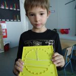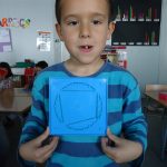 During this first term we are starting to play with 2d shapes: circle, triangle, square, rectangle…; and a great way of learning about them it is playing with geoboards.