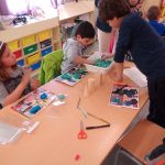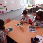 2nd grade pupils practice and make 3D shapes.
