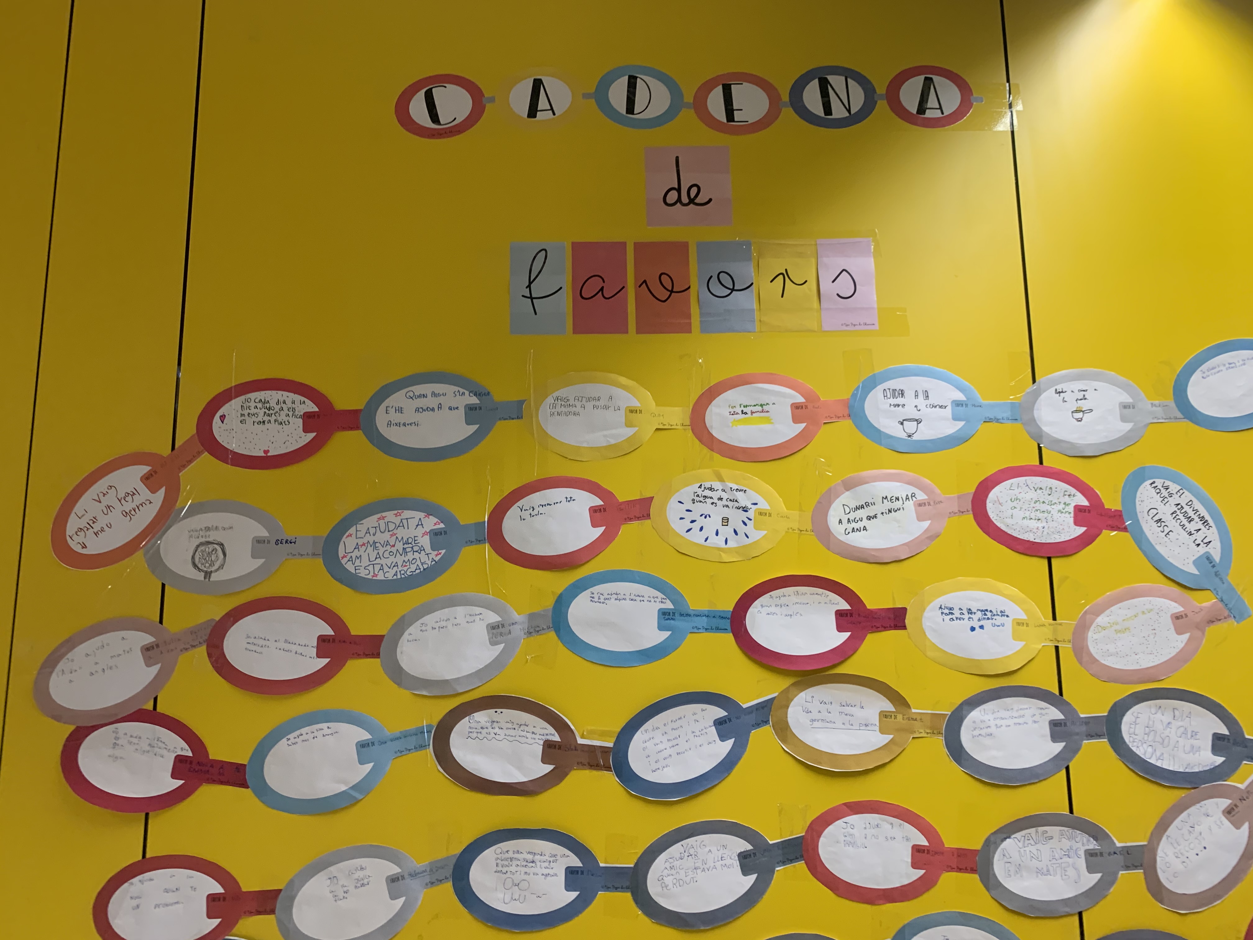 La setmana passada i aquesta a biblioteca hem llegit el conte “Blau que amaga l’horitzó”, vam parlar una mica sobre ell, i establir una conversa, després vam veure a la pantalla digital una imatge sobre els drets humans. Els vam comentar, i vam fer un puzle col·laboratiu sobre el conte. Entre tots i totes el vam construir  i  vam fer unes mans on vam escriure uns quants drets humans com per exemple dret a la vida, el dret a la llibertat, el dret a l’educació i després vam fer una cadena de favors.