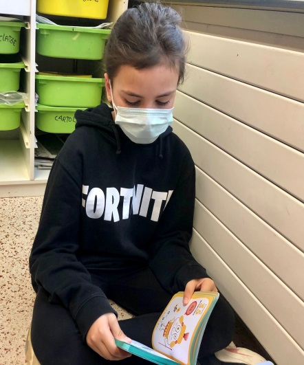 El dimecres a l’estona de biblioteca sempre llegim el llibre que agafem de préstec i també fem la motxilla viatgera. La motxilla viatgera la portem el dilluns per fer la quarantena de 48 hores. Ens agrada sempre llegir tots junts ens ho passem molt be.